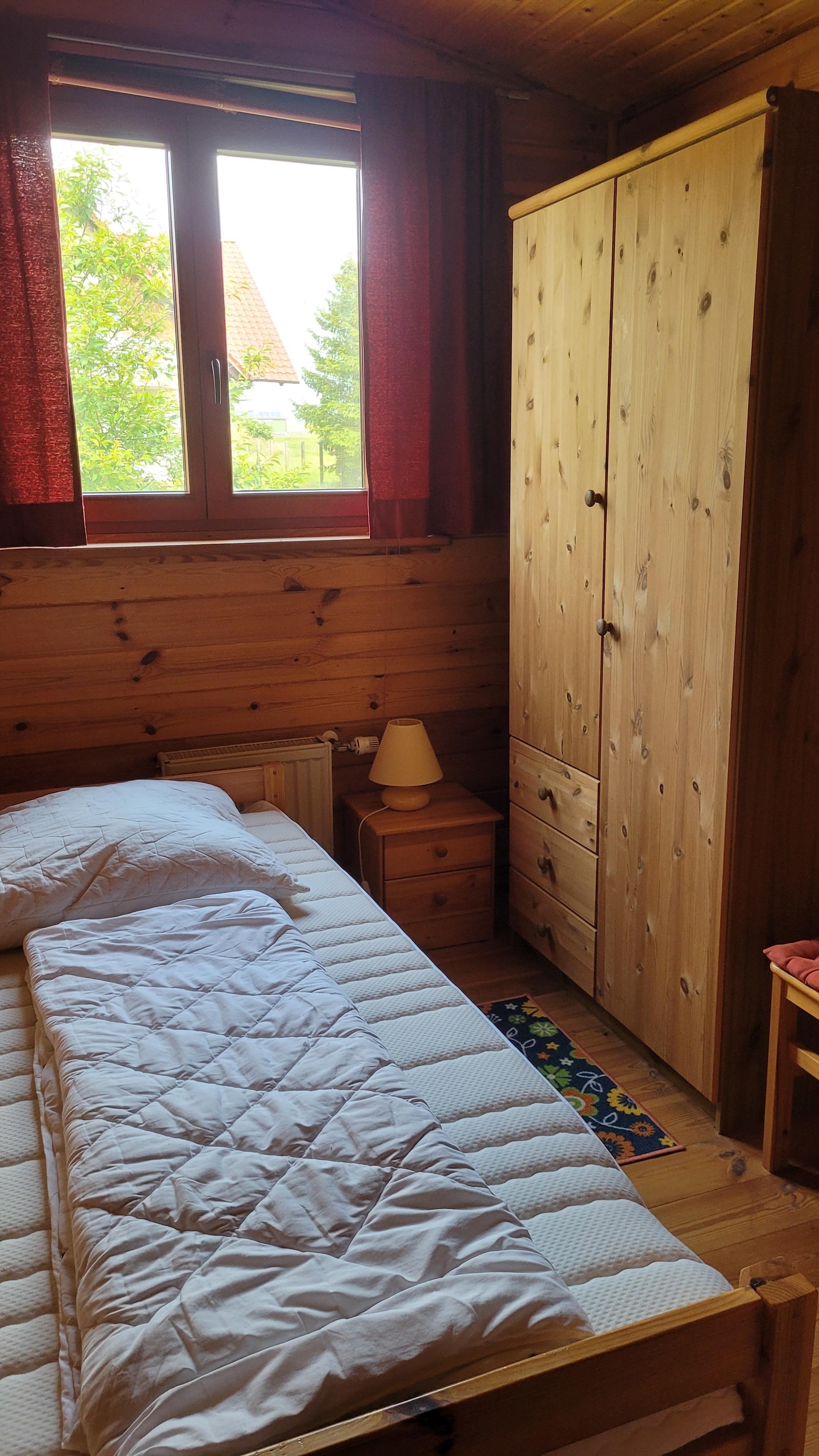 Gemütliches Ferienhaus als Doppelhaushälfte, im Blockbohlenstil, 1, 5-geschossig für 4 Personen möglich plus Baby. Sie können unsere Ferienhäuser, sowie das gesamte Grundstück mit dem Teich genießen.