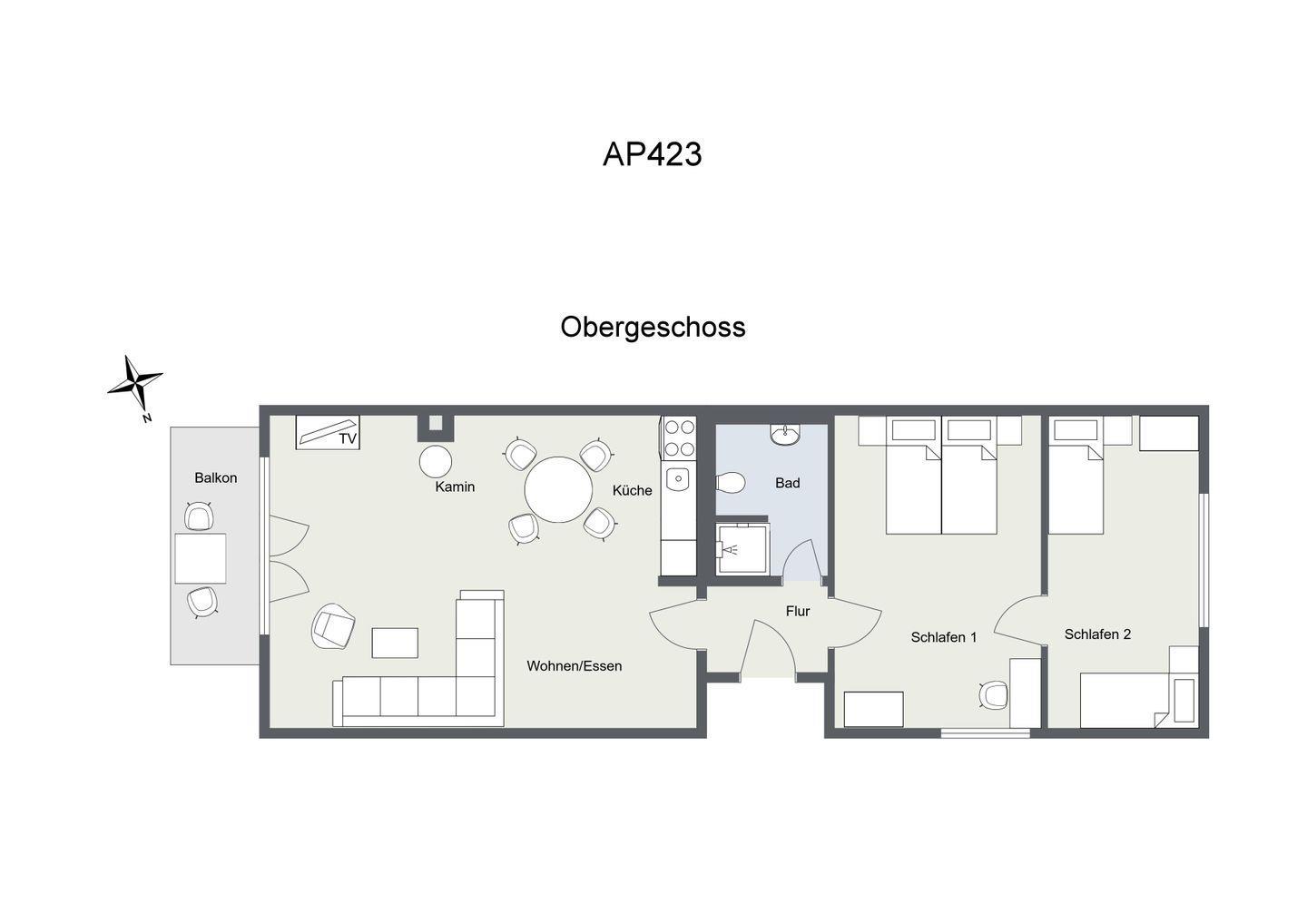 Willkommen im familienfreundlichen 3-Zimmer-Apartment im 1. OG! Auf großzügigen 83 m² bietet es Platz für 4 Personen. Der Wohn- und Essbereich mit Kamin und offener Küche bildet das Herzstück, von dem aus Sie auf den großzügigen Balkon mit direktem Müritzblick gelangen.