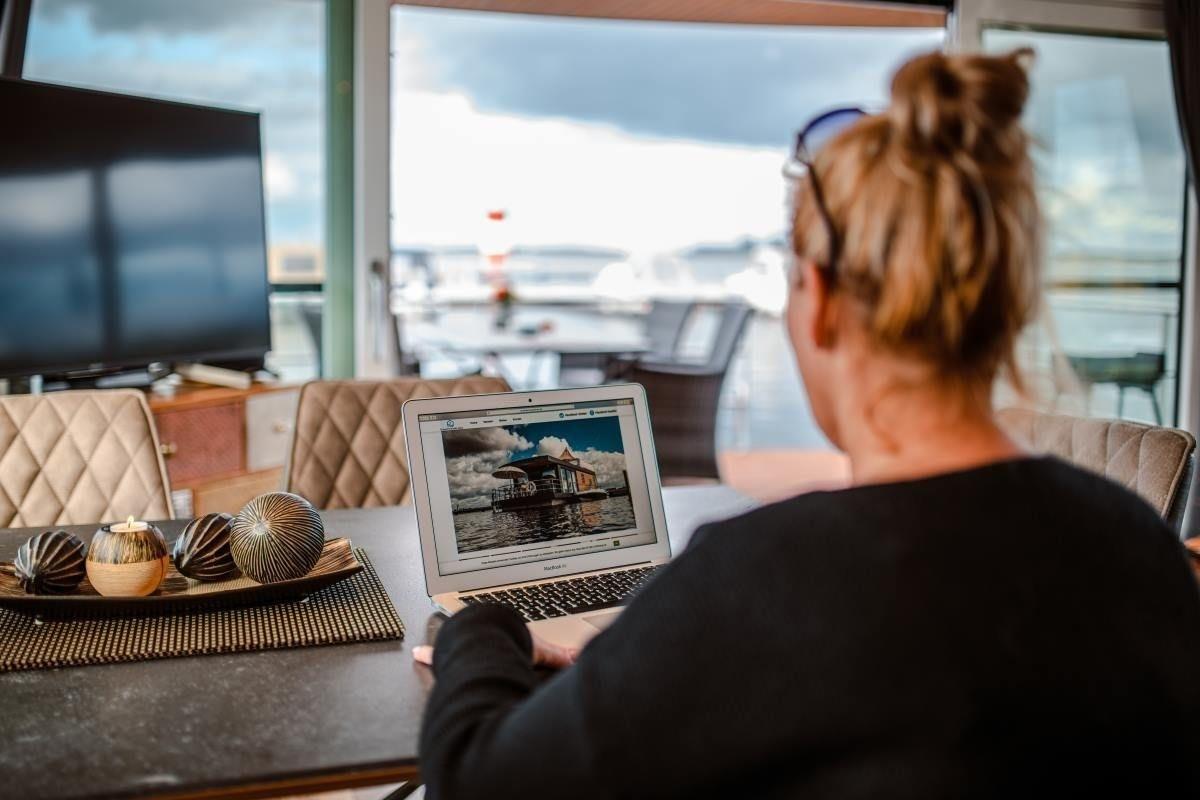 Aus dem Wohn- und Essbereich gelangen Sie auf die Terrasse. Hier können Sie Ihre Mahlzeiten genießen. Auf der Dachterrasse kann man sehr gut entspannen und die Seele baumeln lassen. Erleben Sie das Gefühl von Freiheit auf dem Wasser!