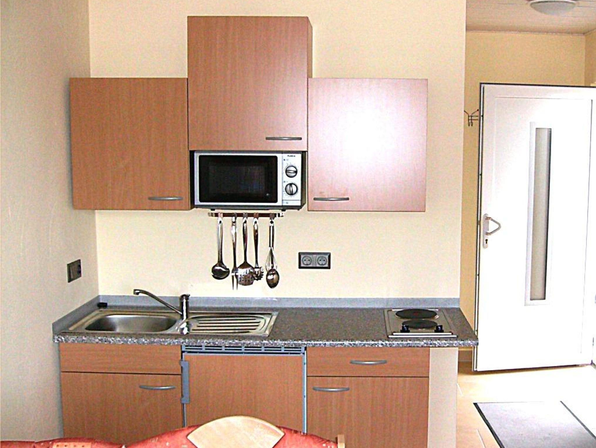 Auf dieser Ebene ist auch die Kochecke mit Spüle (warm/kalt Wasser), Kühlschrank, Mikrowelle und 2 Herdplatten. In den Hängeschränken sind Geschirr, Kaffeemaschine, Toaster, Eierkocher und ein Wasserkocher. Besteck, Pfannen, Töpfe und weitere Kochutensilien sind in den Schränken unter der Spüle verstaut.