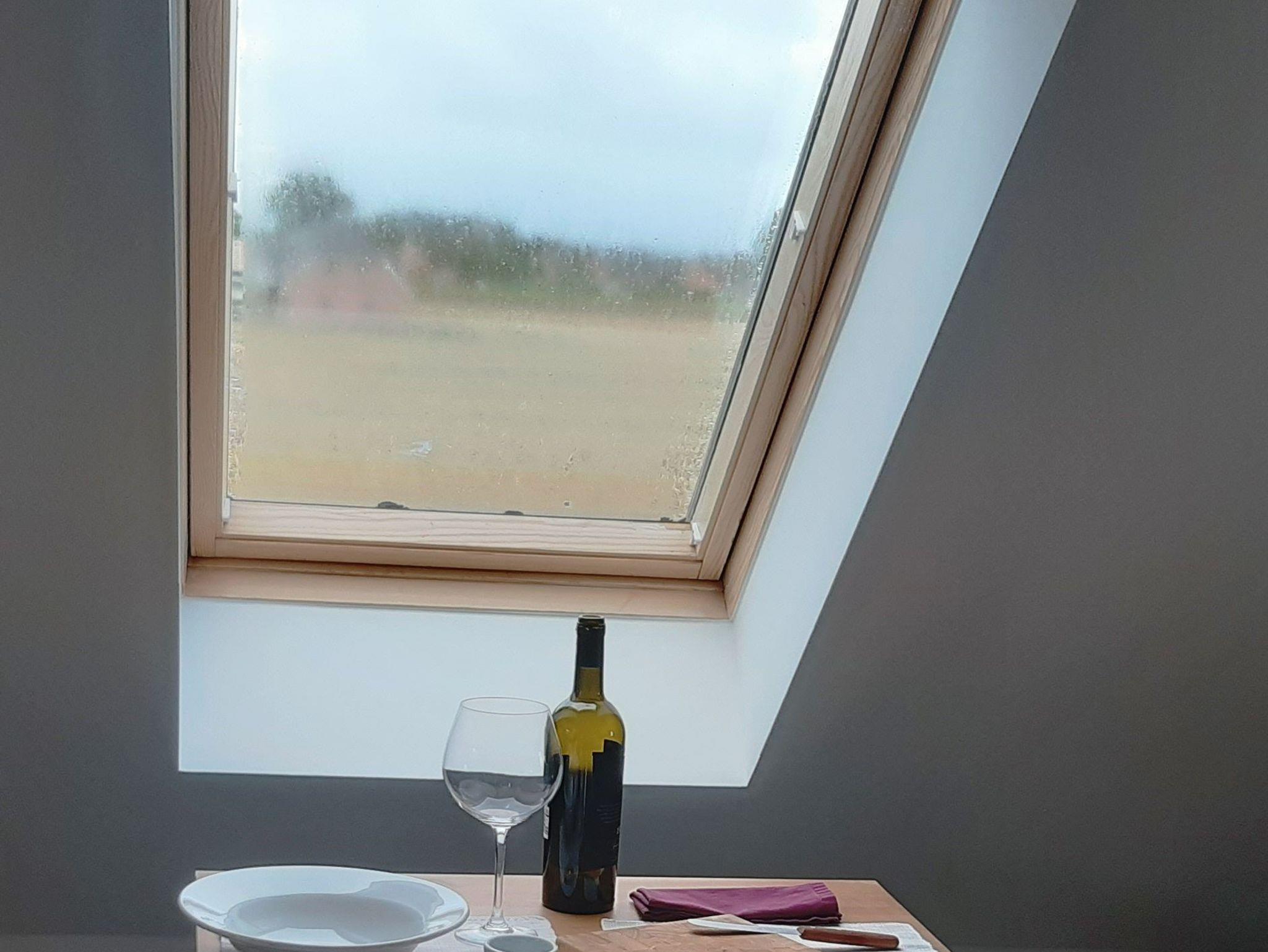 Lichtdurchflutete Dachgeschoßwohnung für 2 Personen mit Traumblick über die Elbe und Felder.