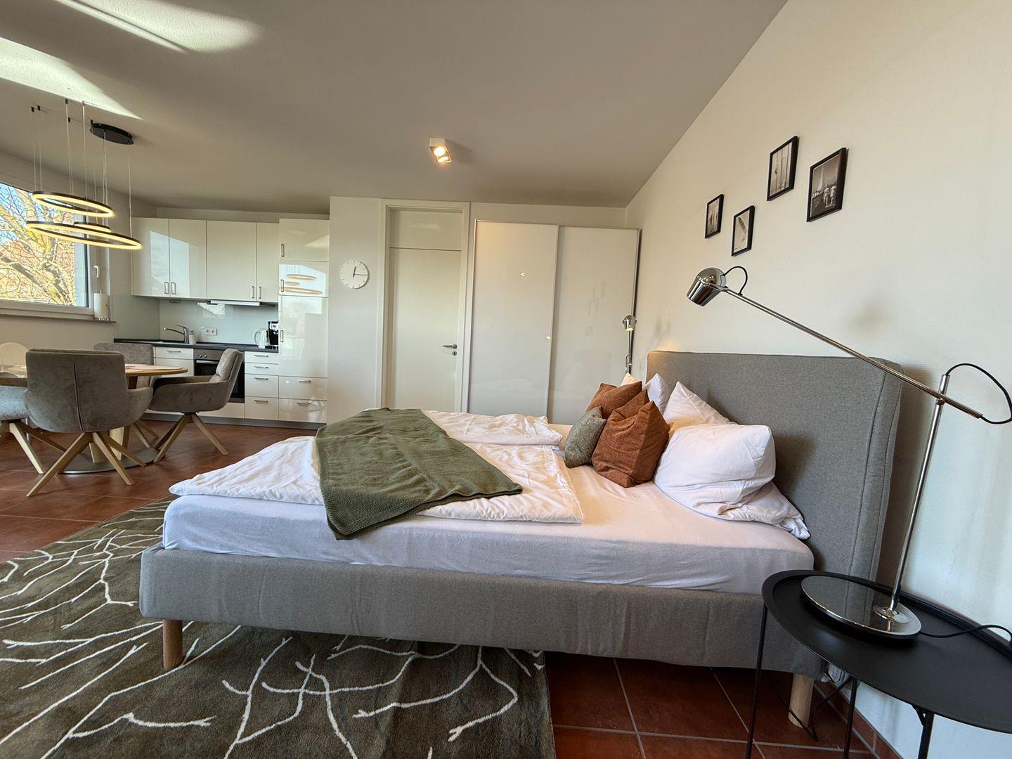 Herzlich willkommen im Lieblingsplatz Konstanz, Ihrem idealen Rückzugsort für unvergessliche Erlebnisse am Bodensee. Diese erstklassige Penthouse-Unterkunft liegt in der dritten Etage eines modernen Gebäudes und bietet Ihnen mit einer Fläche von 30 m² genügend Raum für bis zu drei Personen. Die geschmackvoll gestaltete Wohnung vereint Komfort und Stil und ist perfekt für Familien, Paare oder Geschäftsreisende.