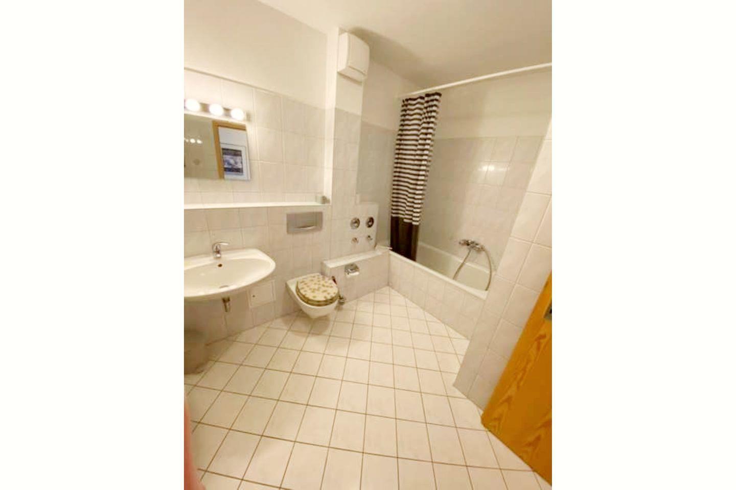 Das Badezimmer kombiniert moderne Annehmlichkeiten mit Funktionalität. Hier finden Sie eine Badewanne mit integrierter Dusche, ein Waschbecken und ein WC. Frische Handtücher und eine Grundausstattung für Ihre Ankunft sind selbstverständlich vorhanden. Auf Wunsch können Sie auch die Waschmaschine nutzen, um stets gut vorbereitet zu sein.