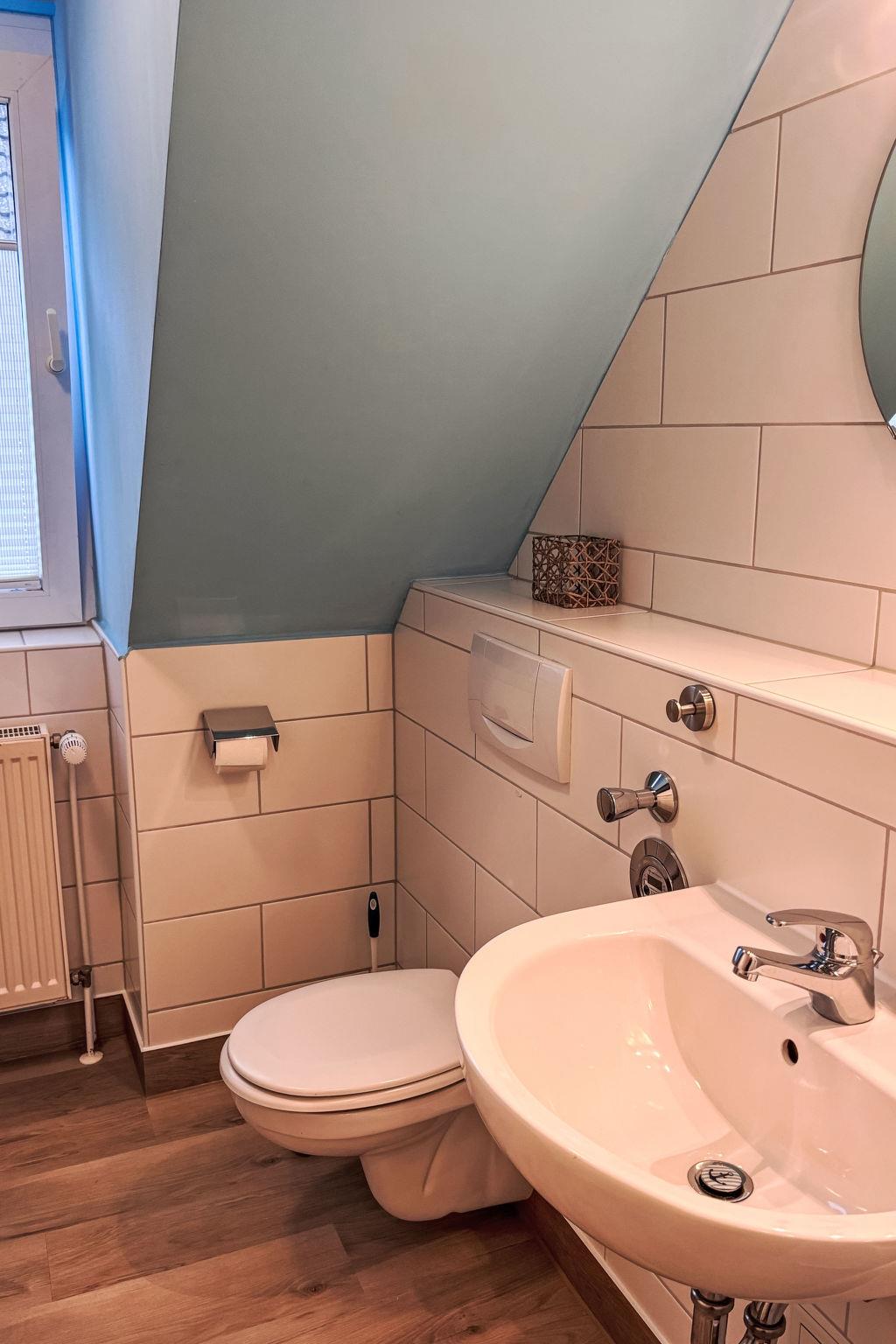 "Ankerplatz", 2-room apartment 70 m2 on 2 levels on 1st floor. Beautiful and cosy furnishings: living/dining room with cable TV (flat screen), radio. Exit to the balcony. 1 room with 1 double bed (180 cm, length 200 cm). Open kitchen (oven, dishwasher, 4 ceramic glass hob hotplates, toaster, kettle, microwave, electric coffee machine). Shower/WC. Top floor: open gallery with sloping ceilings with 1 double bed (180 cm, length 200 cm). Balcony. Balcony furniture. Facilities: children's high chair, baby cot. Internet (WiFi, free). Please note: non-smokers only. Smoke alarm. Instead of an enclosed bedroom, some sleeping areas are located in an open-plan area (gallery, alcove, etc.).