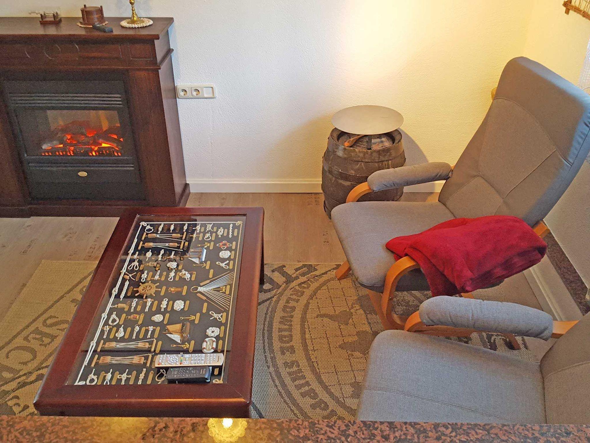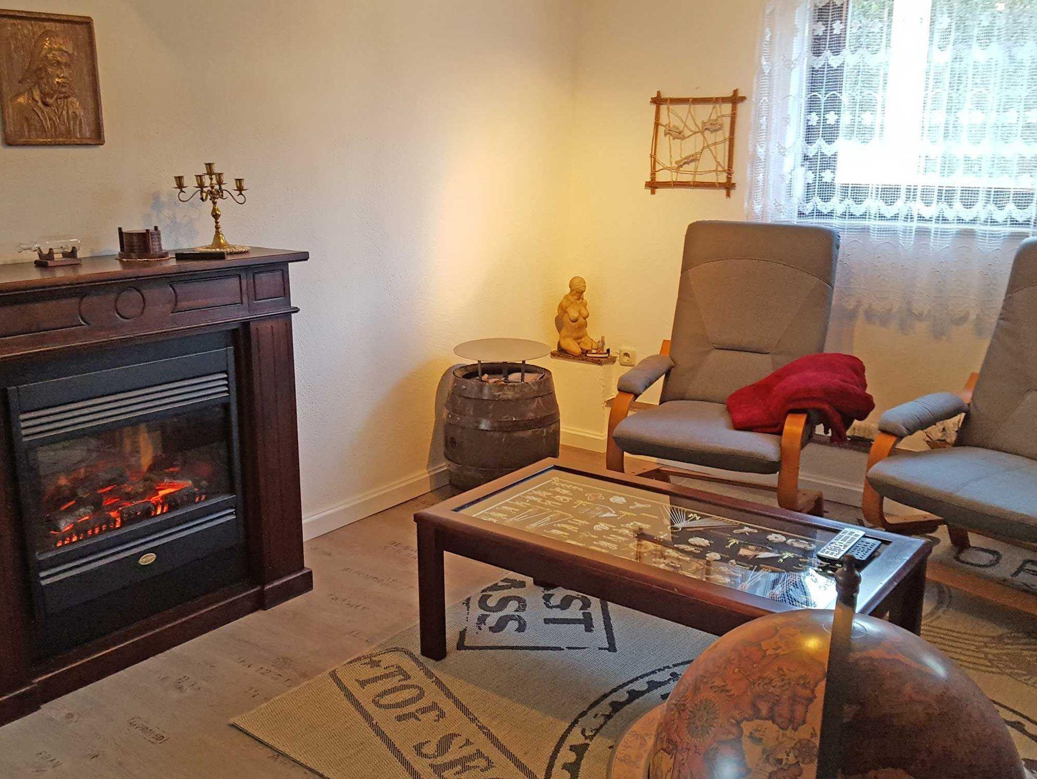 Die geschmackvolle und mit der Liebe zum Detail eingerichtete 2-Raum-Ferienwohnung befindet sich im Untergeschoss des Einfamilienhauses des Vermieters mit separatem Eingang. Hier ist der Ferienwohnungsname Programm! Das Wohnzimmer ist mit einem wunderschönen E-Kamin ausgestattet, durch den die besonders gemütliche Atmosphäre noch verstärkt wird. Ein Flat-TV und ein Radio mit USB-Anschluss gehören ebenfalls zur Ausstattung.