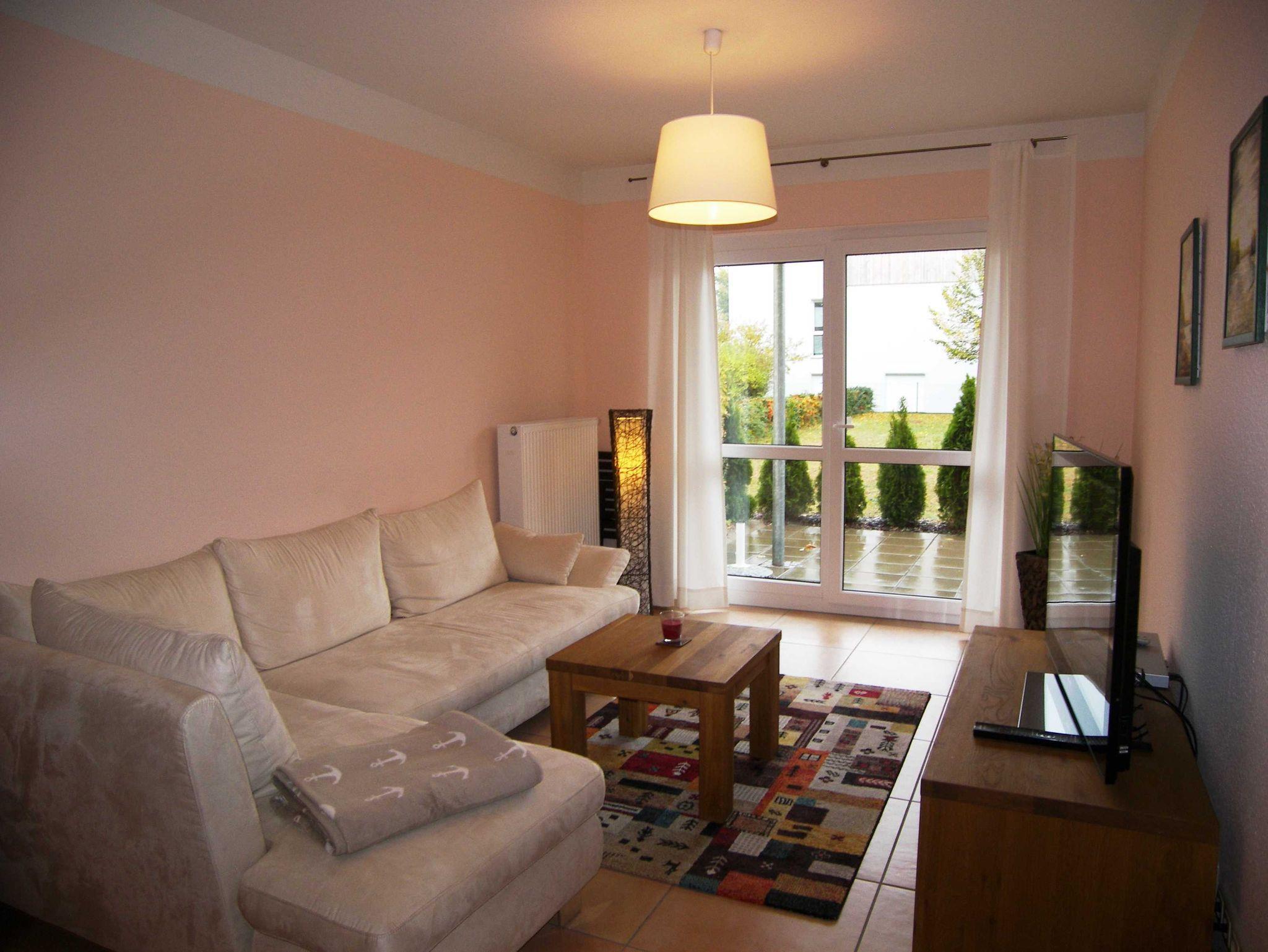 Die modern eingerichtete, ebenerdige Ferienwohnung bietet Ihnen auf 60 qm Platz für bis zu 2 Personen. Der großzügige Wohnbereich ist ausgestattet mit einer Couchlandschaft, Flat-TV, DVD- und CD-Player. An den Wohnbereich schließt sich die vollausgestattete, offene Küche mit Cerankochfeld, Backofen, Spülmaschine, Kaffeemaschine, Toaster und Wasserkocher sowie einem Esstisch an. Das Schlafzimmer verfügt über ein Doppelbett und einen Kleiderschrank für Ihre Urlaubsgarderobe. Das Badezimmer ist mit einer Dusche/WC und Haartrockner ausgestattet. Das Highlight ist die große Sonnenterrasse. Mit 30 qm bietet die Terrasse viel Platz zum Sonnen und Entspannen. WLAN steht Ihnen während Ihres Aufenthaltes kostenfrei zur Verfügung.