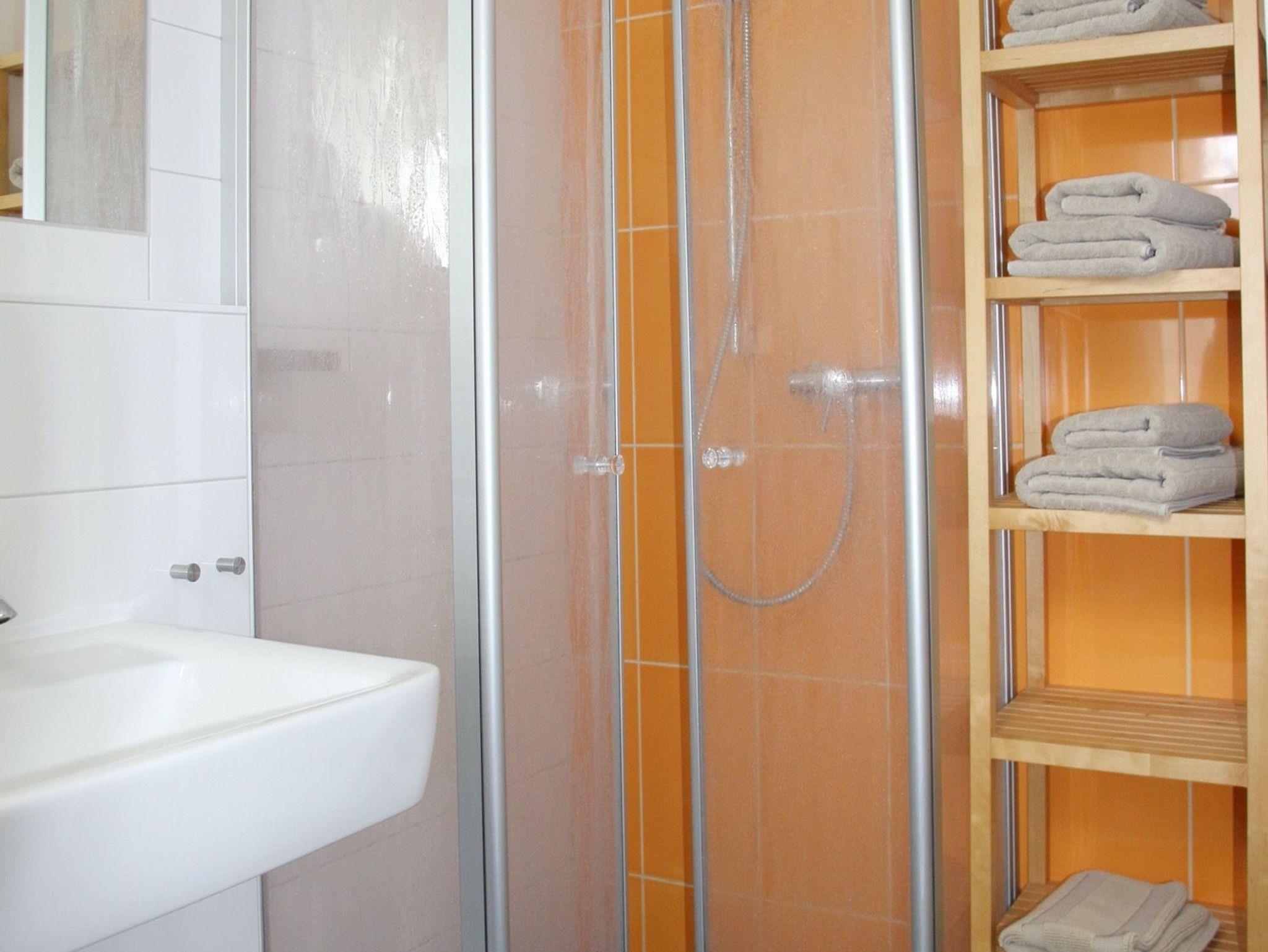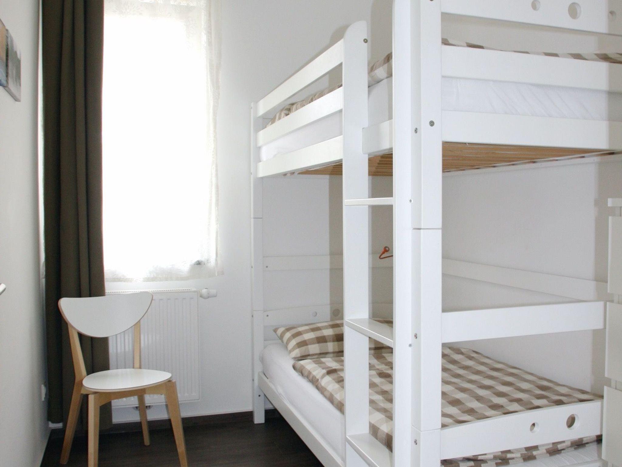 Ferienwohnung 1 bietet Platz für 4 Personen. Es gibt ein Wohnzimmer, zwei Schlafzimmer, Küche und Bad. Betreten wird die Ferienwohnung über den Wohn- und Essbereich. Vorgelagert befindet sich hier eine sonnige Terrasse. Das Wohnzimmer ist mit Couch und Kamin zum Ausruhen gerüstet. An das Wohnzimmer grenzt die offene Küche. Ein Schlafzimmer ist mit einem Doppelbett, das andere mit einem Doppelstockbett ausgestattet.