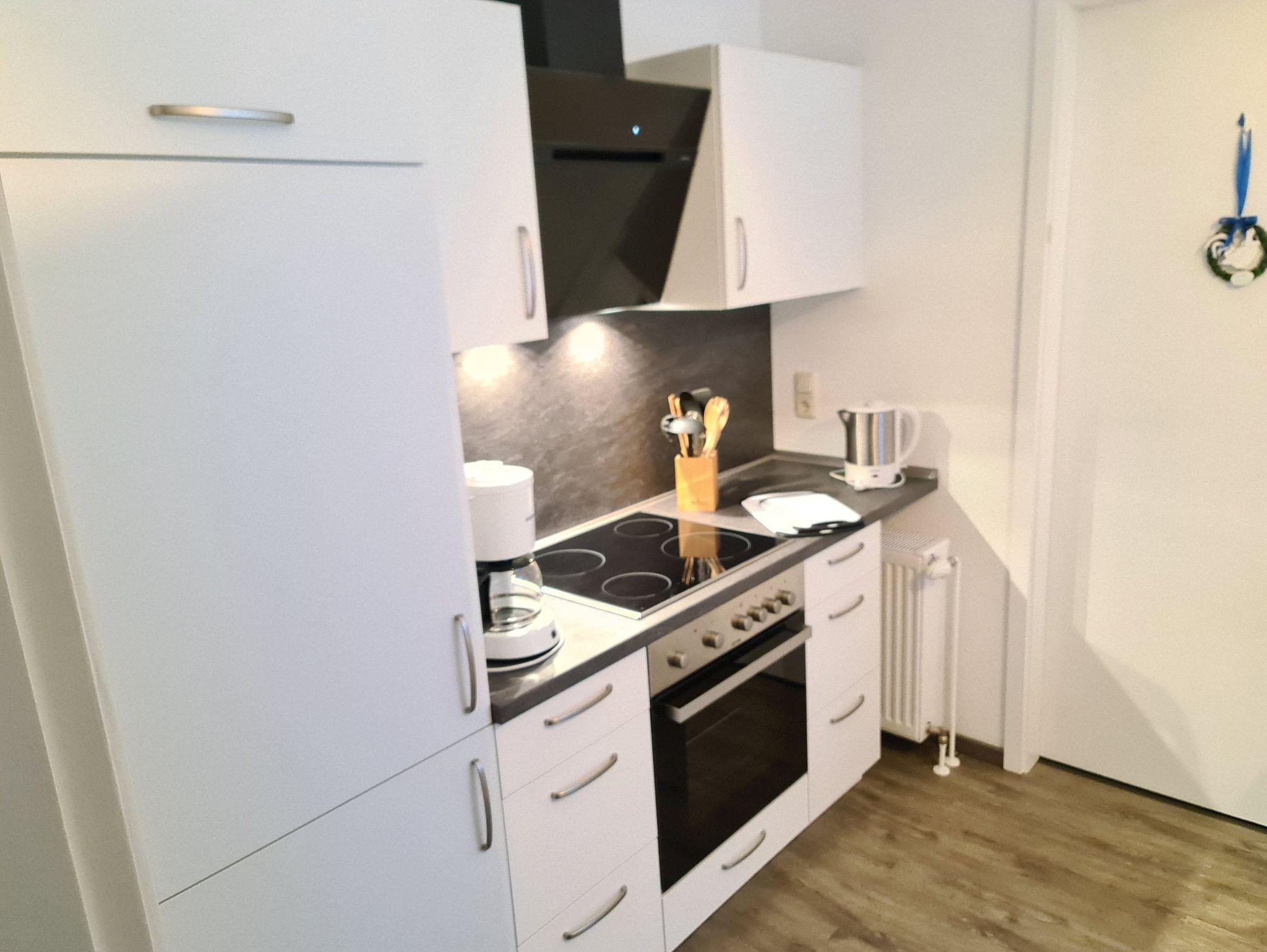 In der Ferienwohnung Schmittchen ( für 4 Personen + 1 Kleinkind im zusätzlichen Reisebett) können Sie gleich im Flur Ihre Schuhe und alltägliche Garderobe ablegen. Das Bad ist mit Dusche und WC ausgestattet. Die nebenliegende Küche bietet Ihnen eine Küchenzeile mit Backofen und Ceranfeld, einen Dunstabzug, einen Kühlschrank, eine Mikrowelle, einen Geschirrspüler, Kaffeemaschine, Toaster und mehrere Abstellmöglichkeiten und Schränke mit Geschirr/Kochgeschirr sowie Haushaltsutensilien. Zur Unterhaltung haben Sie hier ein Radio. Im angrenzenden Schlafzimmer mit Doppelbett finden Sie genügend Platz für Ihre Garderobe. Zum Entspannen ist das geräumige Wohnzimmer nebenan. Hier können Sie ungestört Radio hören, TV-Sendungen sehen oder einfach relaxen und ein spannendes Buch lesen. Die Aufbettung für 2 Personen erfolgt auf der ausklappbaren Schlafcouch. Für Sonnenhungrige steht die Terrasse offen, ausgestattet (Mai-Oktober) mit Tisch und Stühlen, Sonnenschirm, einem Strandkorb und einem Holzkohlegrill.