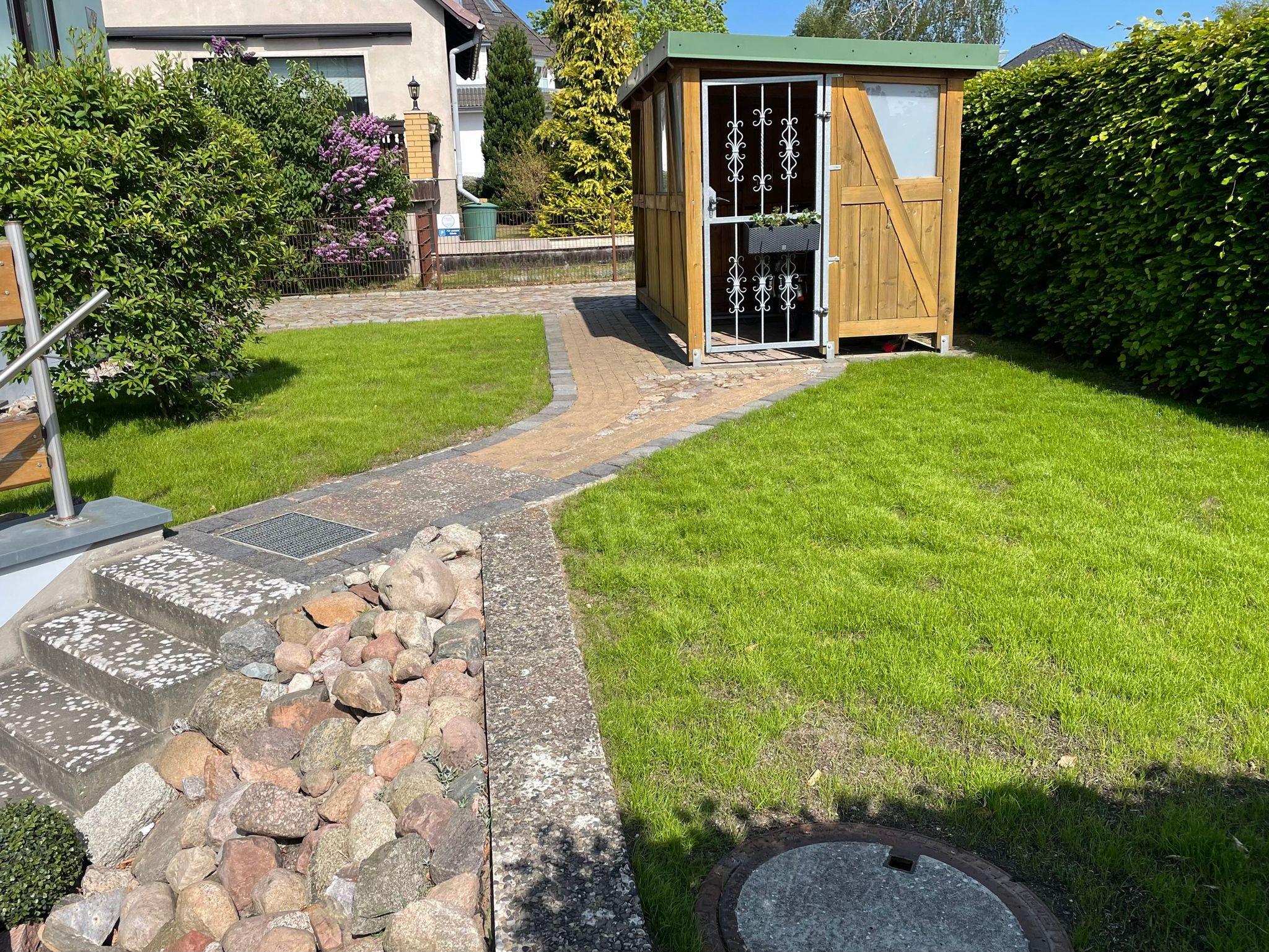 Zu der Ferienwohnung gehört eine Terrasse mit Gartenmöbeln, ein Grill und ein separates Fahrradhäuschen. Hier können Sie gern Ihre Fahrräder und Badeutensilien unterstellen. Eine kleine Grünfläche vor der Ferienwohnung lädt zum Spielen der Kinder ein.