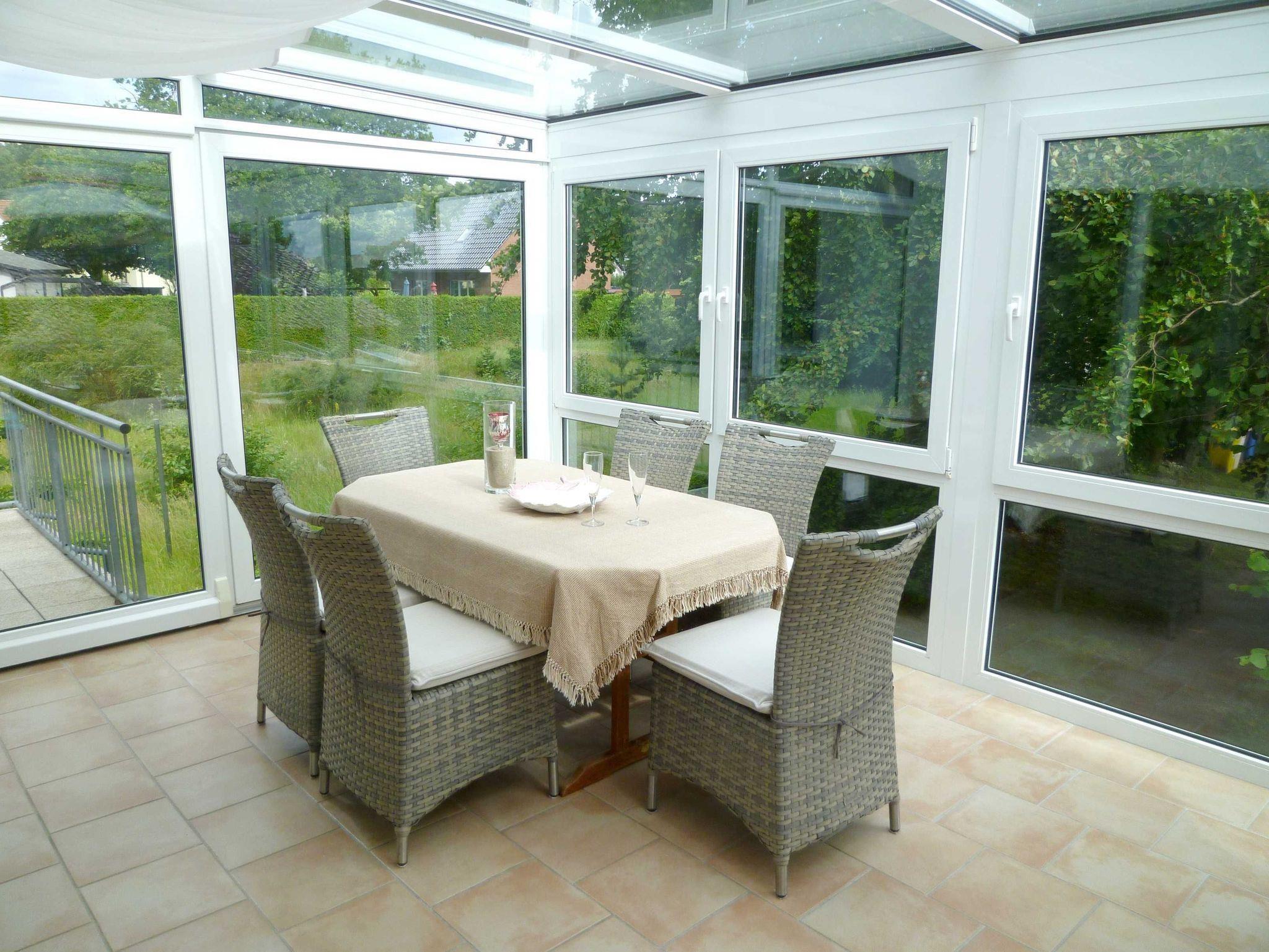 Der großzügige Wintergarten (20 m²) verfügt über zwei Schiebetüren zu den angrenzenden großen Balkonen inmitten wunderschöner Natur, bequeme Liegen laden zum Relaxen ein. Im Wintergarten kann man zu jeder Jahreszeit und bei jedem Wetter wunderbar relaxen. Vor allem im Frühjahr und im Herbst ist es hier besonders gemütlich. Schlafzimmer (massive Pinie) mit Doppelbett und ausklappbarem Schlafsessel (1 Aufbettung auf Anfrage), Kinderzimmer mit hochwertigem Doppelbett (motorische Rahmenverstellung und Matratze mit mehreren Liegezonen) - Weitblick in den Garten aus 2 großen Fenstertüren. Großes Wohnzimmer mit komfortabler Ledergarnitur mit Funktionen und Essbereich, ein elektrisches Kaminfeuer mit tollem Flammeneffekt sorgt für Gemütlichkeit. Ein großer 55'' Fernseher mit Ambilight LED-Hintergrundbeleuchtung und Smart-TV Funktion steht zur Verfügung. Separate massive Küche aus Buche mit Ceran-Kochfeld, Spülmaschine und Mikrowelle, direkter Ausgang zum Wintergarten und Wohnzimmer, Bad in maritimem Design mit Runddusche, sehr ruhige Lage, nur 3 Gehminuten zum Strand.