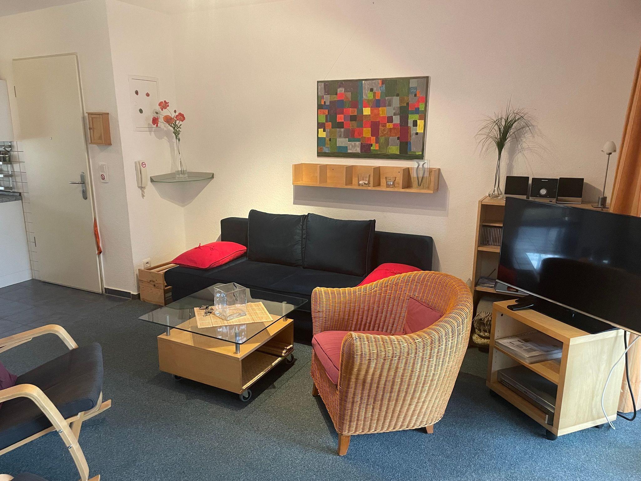Dieses Appartement bietet eine Terrasse mit Bestuhlung ,1 Schlafzimmer mit Doppelbett, ein Wohnzimmer mit Essecke und eine gut ausgestattete Küche mit einem Kühlschrank, Toaster, usw. Auf der gemütlichen Couch mit Flachbild-TV lässt sich dann der ereignisreiche Tag ausklingen.
