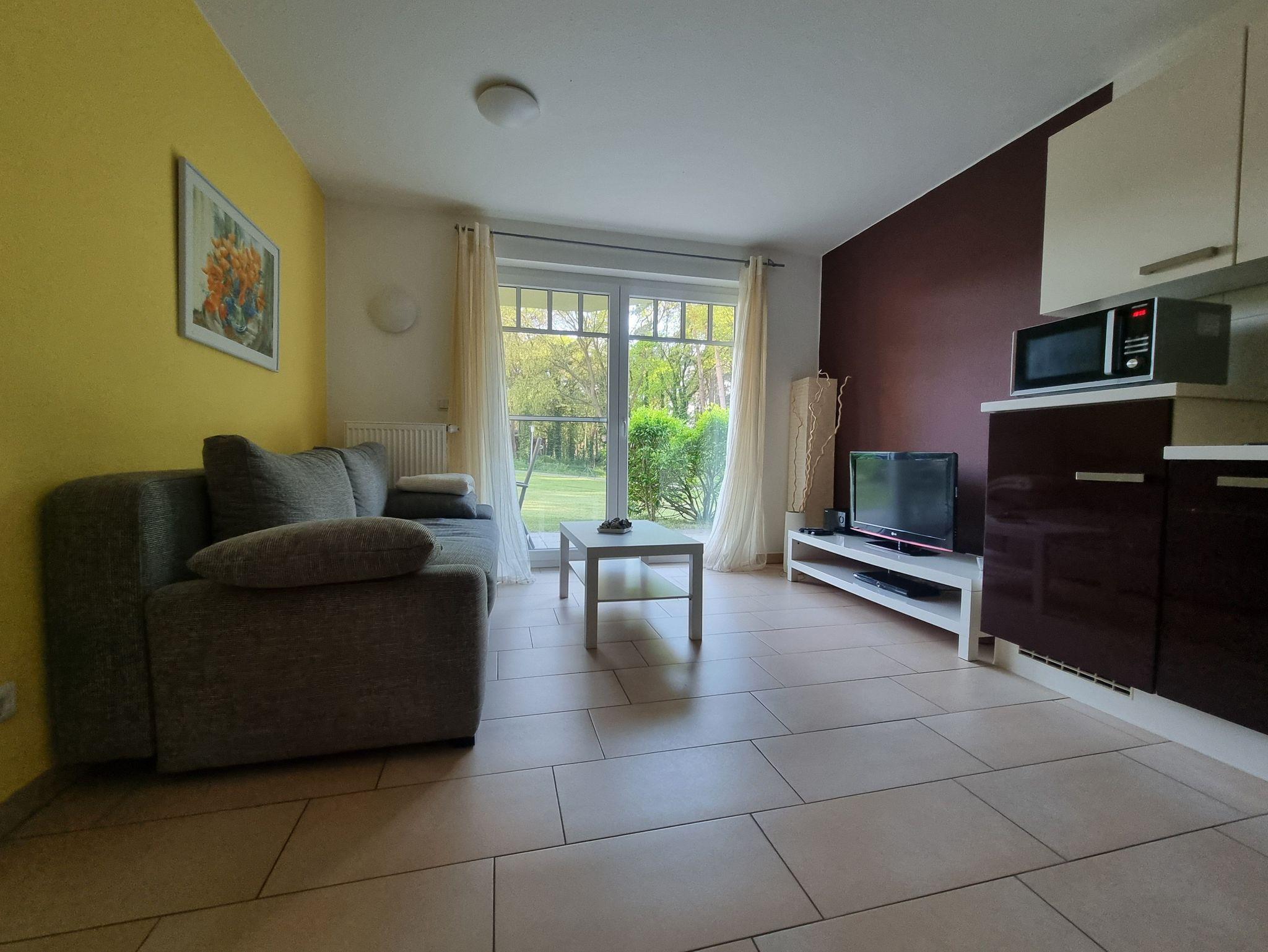Die Wohnung verfügt über ein Schlafzimmer mit Doppelbett und ein Schlafzimmer mit zwei Einzelbetten. Die Wohnung ist ideal geeignet für Familien.