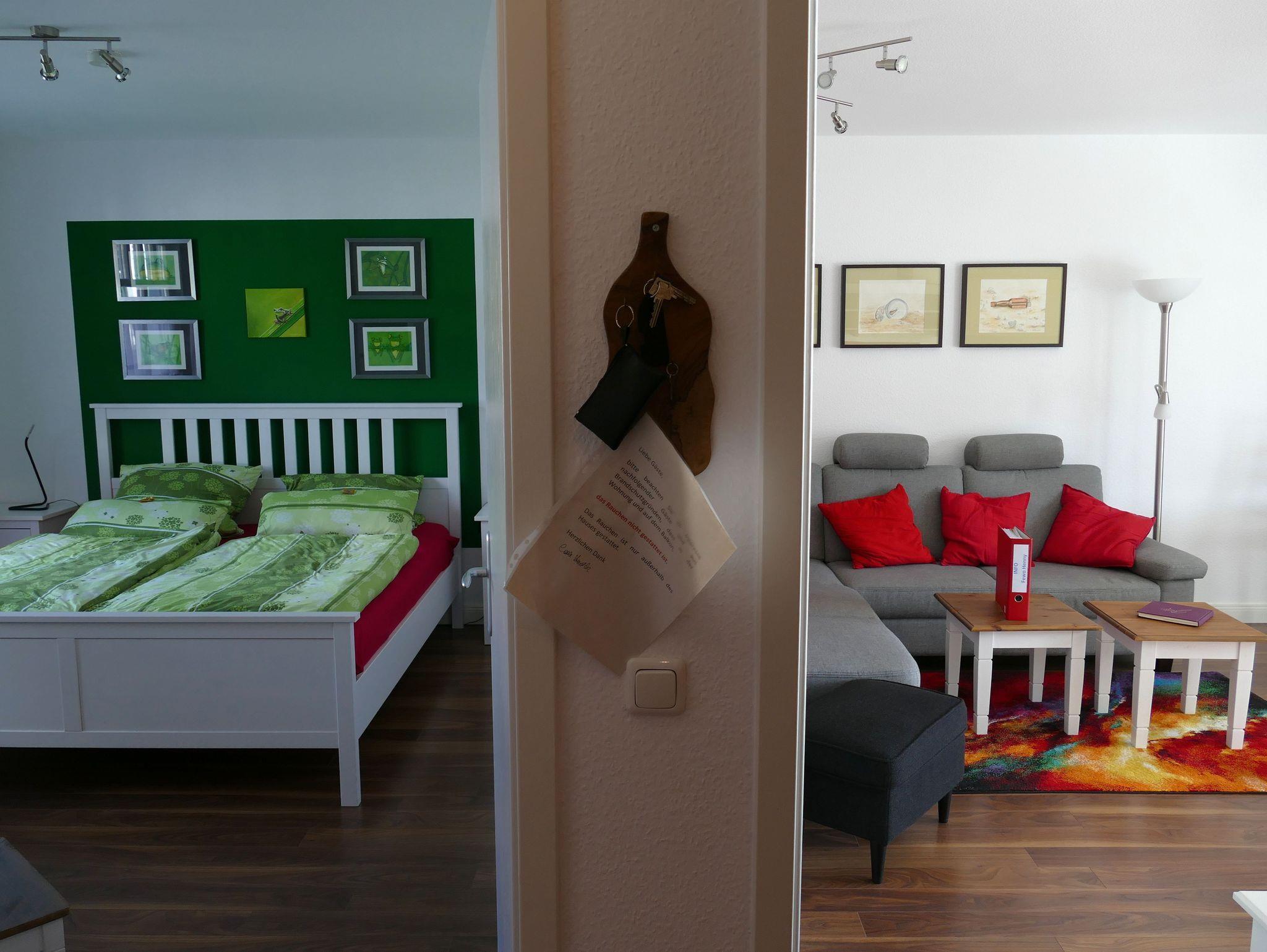 Die Wohnung liegt im 1. OG des Hauses Am Steinberg 12 und ist für max. 4 Personen geeignet. Die Wohnung besteht aus 2 abgeschlossenen Schlafräumen mit Doppelbetten und je einem großen Kleiderschrank. Der Wohnraum hat eine gemütlicher Sofaecke, einen Essbereich und ist mit TV, Soundbar und BluRay-Player ausgestattet. Es steht für Sie ein kostenfreies WLAN zur Verfügung.