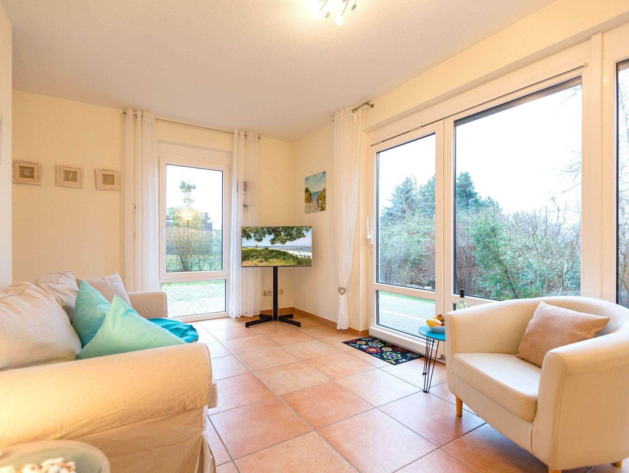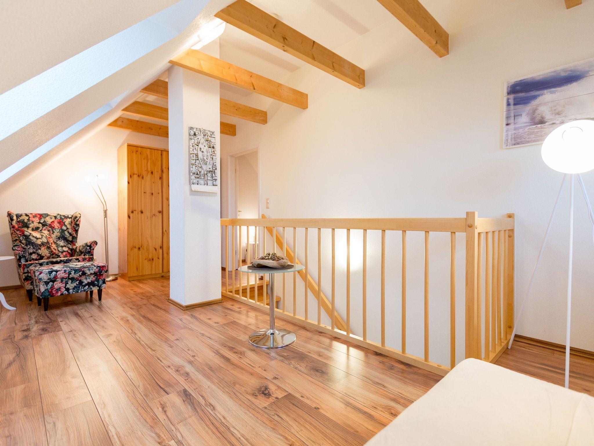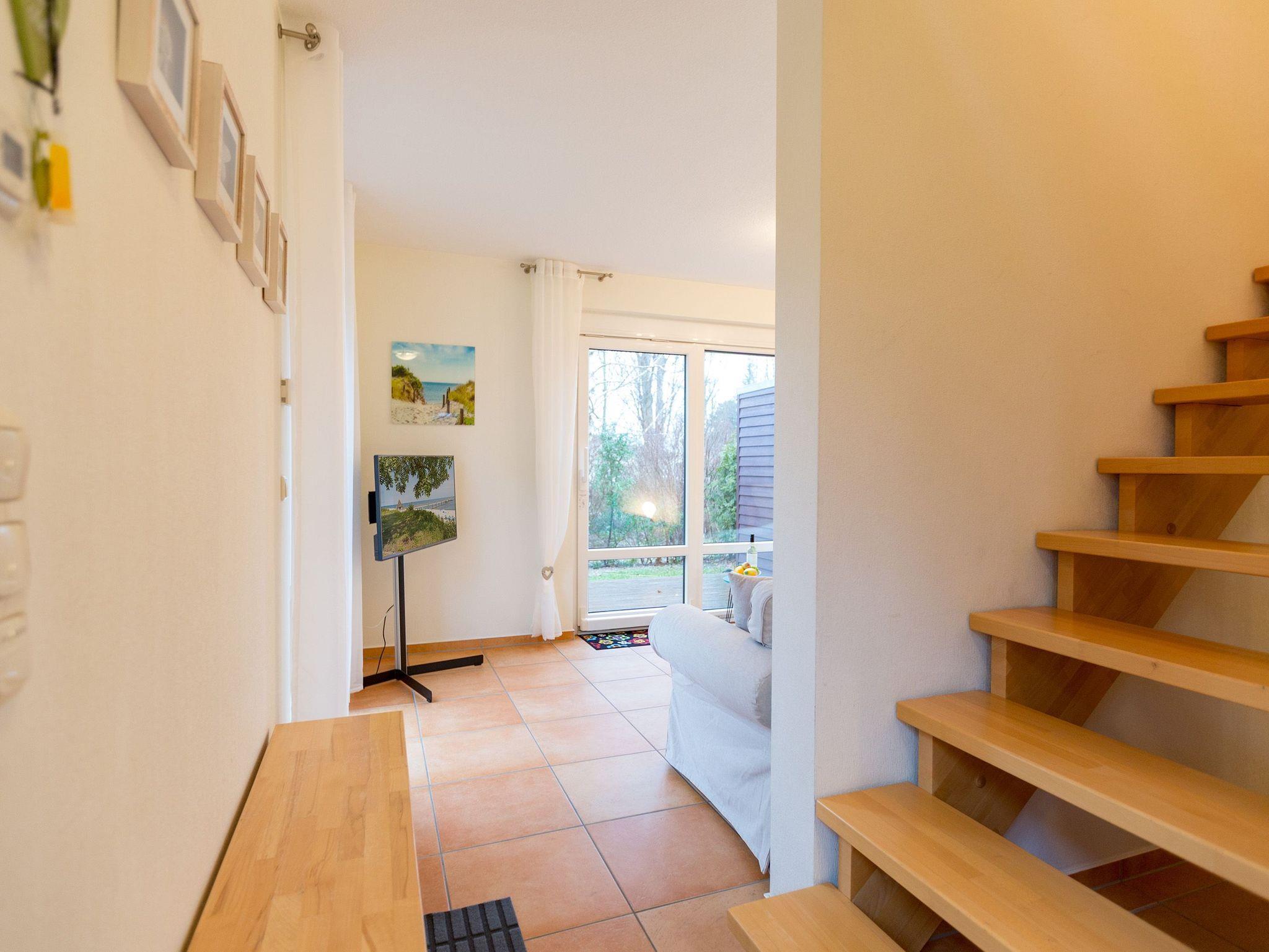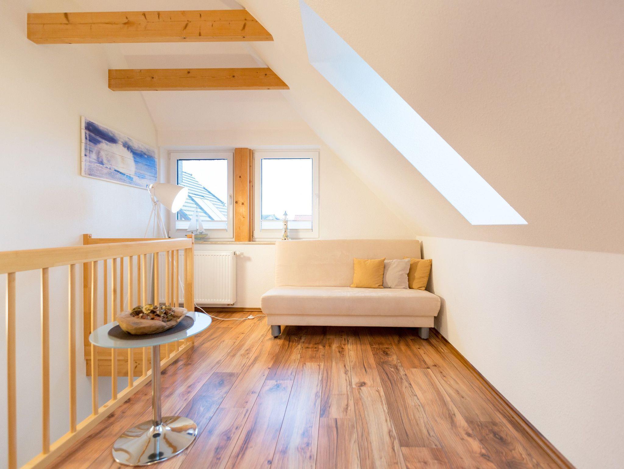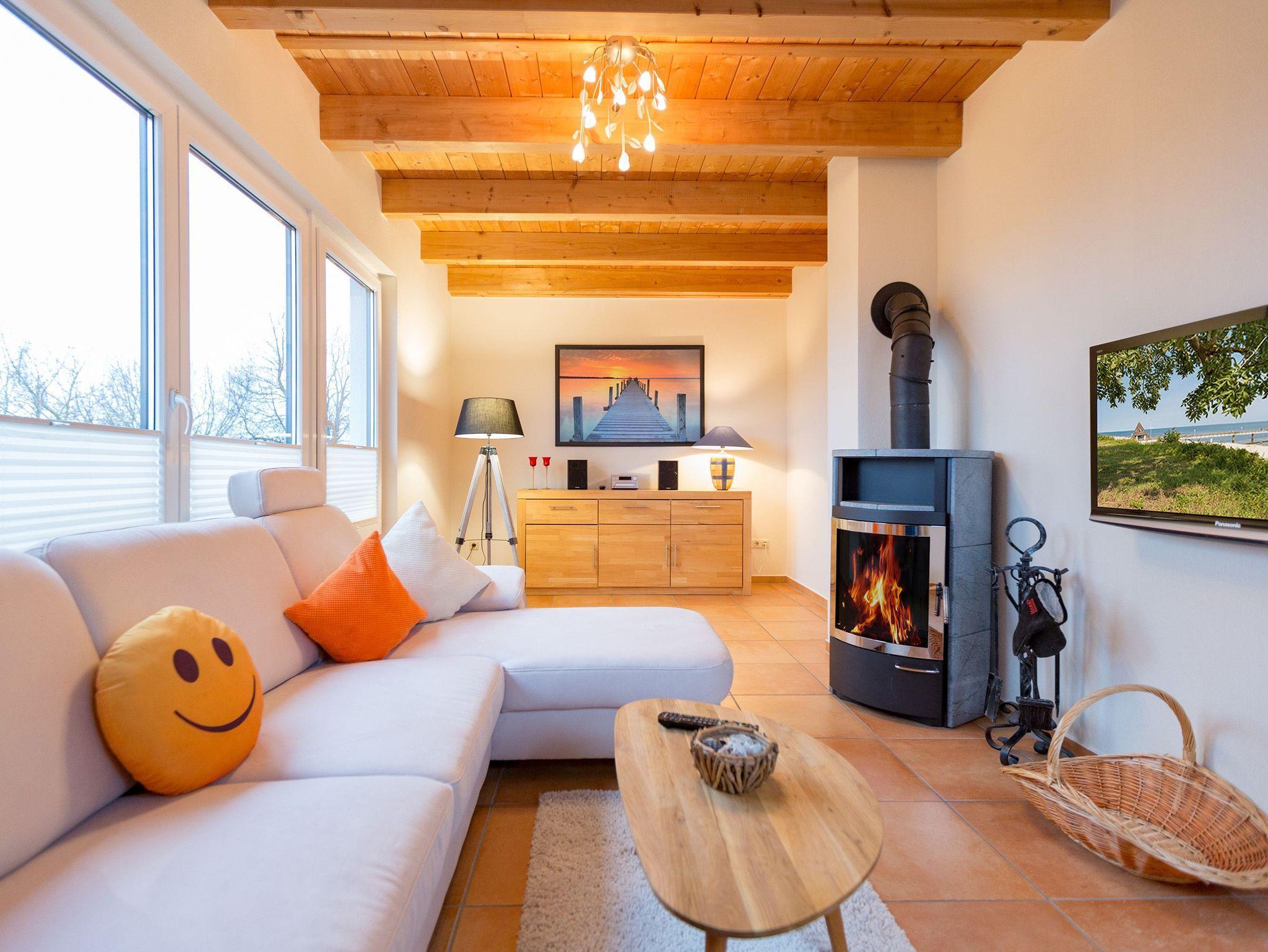 Urlaub auf drei Ebenen ? Die helle und offen gestaltete Ferienhaushälfte, die ein wenig versteckt, doch mitten im Zentrum des Seebades gelegen ist, birgt auf ihren 105 Quadratmetern viel Platz für bis zu fünf Personen und 1 Kleinkind bis 2 Jahre. Wohnkomfort wird hier kombiniert mit modernem Wohndesign; Naturmaterialien mit einer hochwertigen Ausstattung. Hier können Sie sich rundum wohlfühlen. Treten Sie ein in ein wunderschönes Urlaubsdomizil und lassen Sie allen Stress und alle Hektik des Alltags einmal zuhause, denn mit dem Ferienhaus Silva haben Sie ein Zuhause auf Zeit gefunden, dass Sie am liebsten gar nicht wieder missen wollen. Im Erdgeschoss befindet sich ein schöner Eingangsbereich mit Sofa und großem Flat-TV. Hier schließt sich gleich ein großzügiger Essplatz und eine offene Küche an. Voll ausgestattet mit hochwertigen Markengeräten finden Sie in ihr alles, womit Sie Ihren Urlaub auch kulinarisch unvergesslich machen können. Ob Mikrowelle, Spülmaschine, Backofen oder Kühlschrank ? es ist alles da. Vor dem Wohn-Essbereich erstreckt sich eine wunderbar geschützte Südterrasse. Sonnige Stunden und gesellige Momente sind hier garantiert. Im Erdgeschoss befindet sich zudem bereits eines von zwei Bädern mit Dusche und WC und ein Abstellraum. Eine Etage höher wird?s heimelig vor dem Kaminofen. Lassen Sie sich auf die riesige Sofalandschaft fallen und genießen Sie das Flammenspiel. Auch hier ein Flat-TV, der für Unterhaltung sorgt. In einem heimeligen Schlafzimmer mit einem bequemen Doppelbett haben zwei Personen Platz. Ein geräumiger Holzschrank bietet viele Ablageflächen. Das erste Obergeschoss hat ein Badezimmer mit Dusche, Waschtisch und WC. Gehen Sie geradewegs die Treppe bis ganz nach oben, stehen Sie in einem offenen Dachstuhl mit schönen Balken. Eine breite Schlafcouch sorgt auf der dritten Ebene für Entspannung und erholsame Träume. Zum Schmökern, Abschalten und Lesen eignet sich der Ohrensessel mit Fußhocker bestens. Ein weiteres Schlafzimmer birgt direkt unter dem Dach zwei Einzelbetten. Zum Feriendomizil gehören zwei Pkw-Stellplätze am Haus. Bei Anreise sind die Betten für Sie bereits bezogen und Handtücher liegen bereit. Das WLAN steht Ihnen kostenfrei zur Verfügung.
