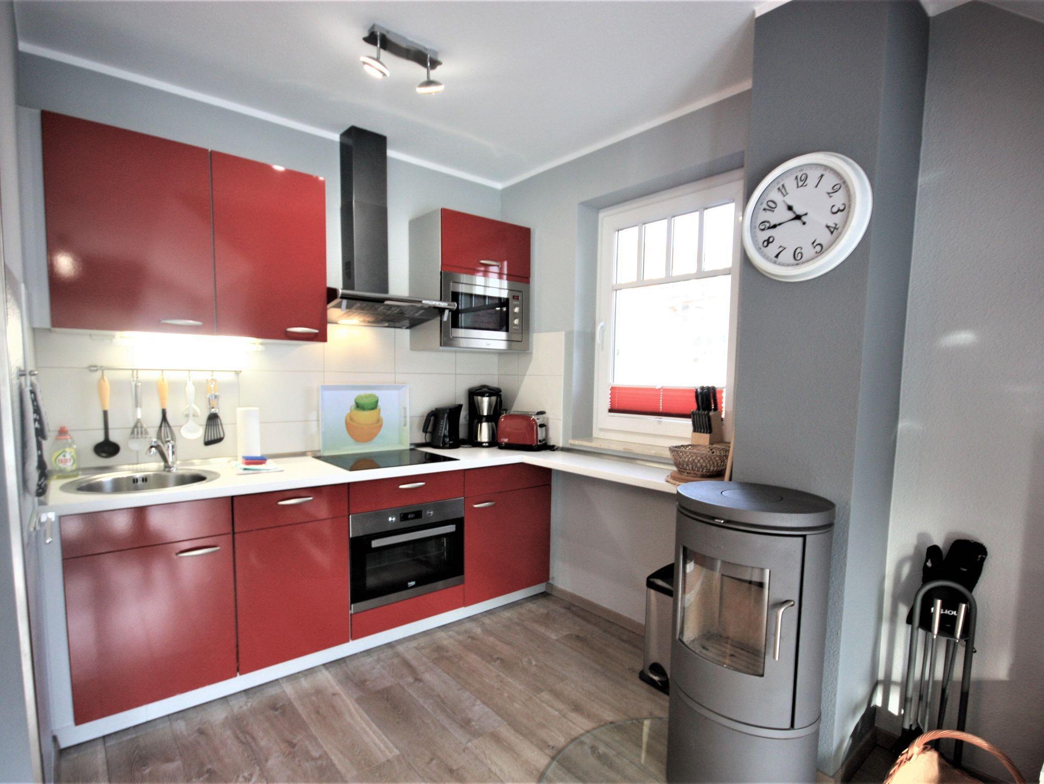 Die Ferienwohnung liegt im Dachgeschoß des Ferienhauses. Sie besteht aus Wohnzimmer, kompl. ausgestatteter Küche, Schlafzimmer und Tageslichtbad. Die Ausstattung der Einbauküche ist neuwertig funktional und qualitativ hochwertig unter anderem mit Toaster, Kaffeemaschine, Mikrowelle mit Heißluft, Kochfeld, Geschirrspüler, Gefrierfach. Großer Südbalkon mit Blick auf den Küstenwald, große Spielwiese, Grillplatz. Diese Ferienwohnung ist mit einem Echtholzkamin und WLAN ausgestattet.