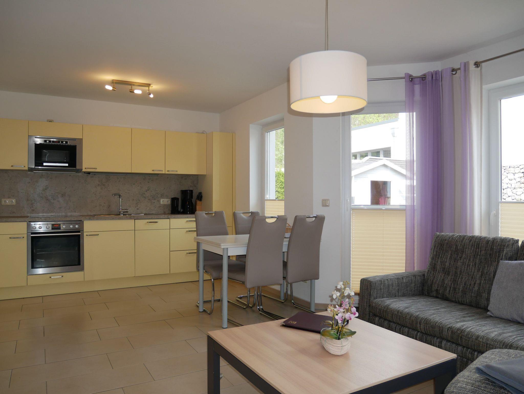 Der Wohnbereich ist mit einem Sofa, Flachbildfernseher (32 Zoll) und DAB- Radio ausgestattet. Die Küchenzeile besteht aus einem Backofen, Induktionsherd, Kühlschrank mit Gefrierfach, Spülmaschine, Mikrowelle mit Grill Funktion, Kaffeemaschine, Wasserkocher und Toaster.