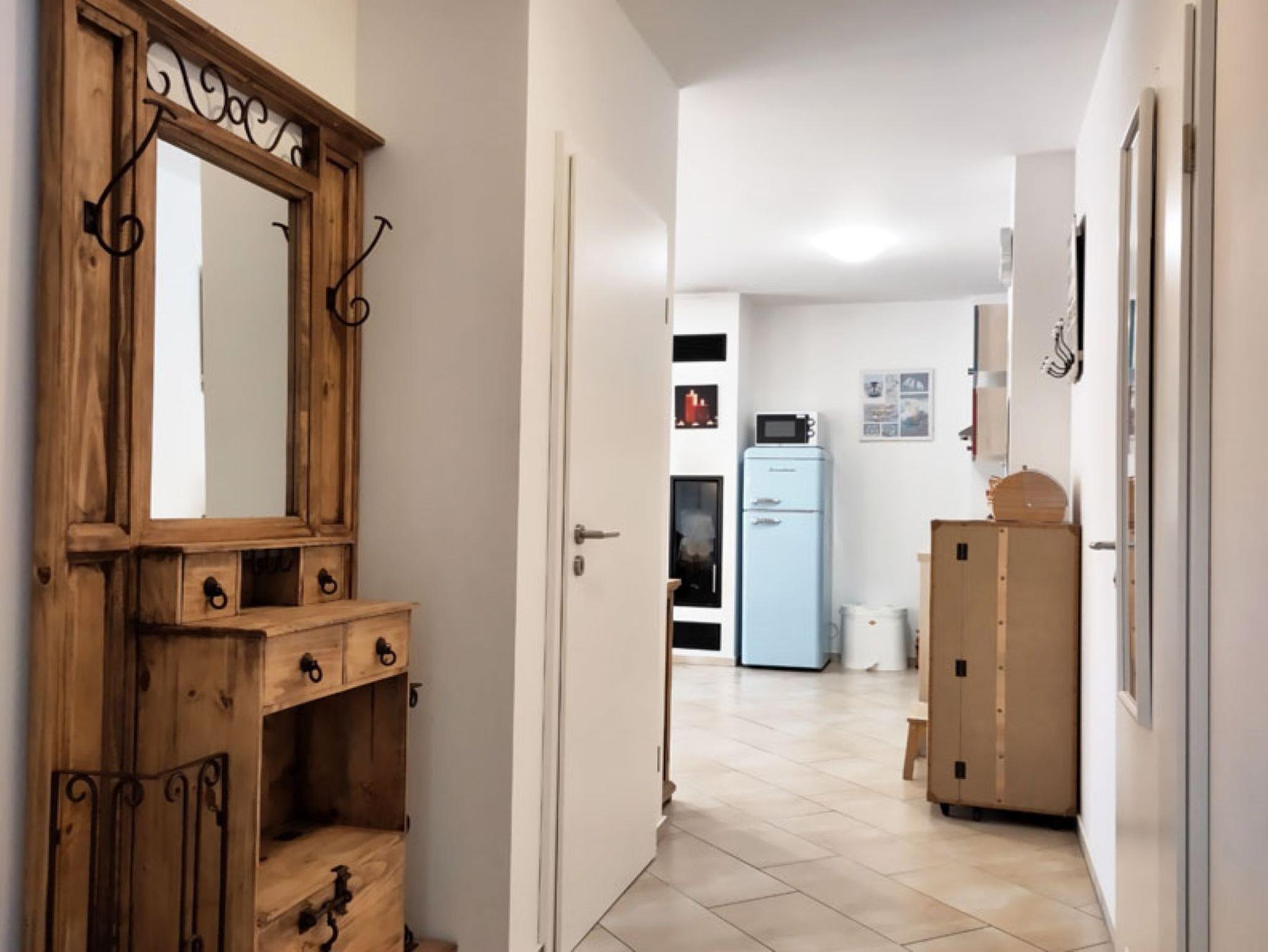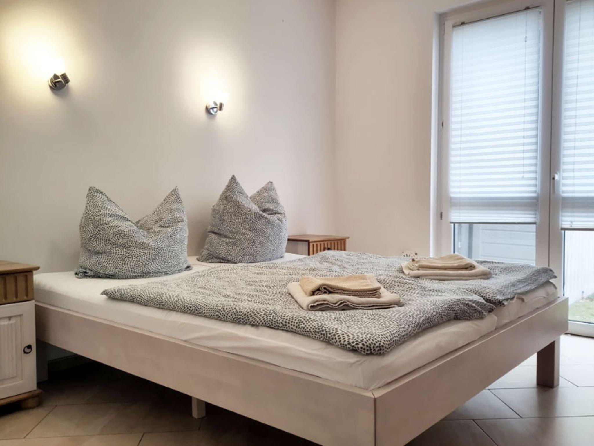 Perfekt für kleine Familien oder 3 Freunde im Ostseeurlaub! Diese Ferienwohnung bietet mit seinem Schlafzimmer und einer Schlafcouch Platz für bis zu 3 Personen. Der große Wohn- und Kochbereich lässt keine Wünsche offen: voll ausgestattete Küche mit Backofen, Cerankochfeld, Geschirrspüler und Kühl-Gefrierkombination; großer Esstisch; moderne Couch mit TV; Kamin und großer Terrasse. Im großen Bad können Sie sich mit einer Whirlpool-Badewanne, Dusche und Sauna verwöhnen. Die Wohnung hat eine ruhige Terrasse zur Rückseite des Hauses mit zahlreichen Sitzmöglichkeiten.