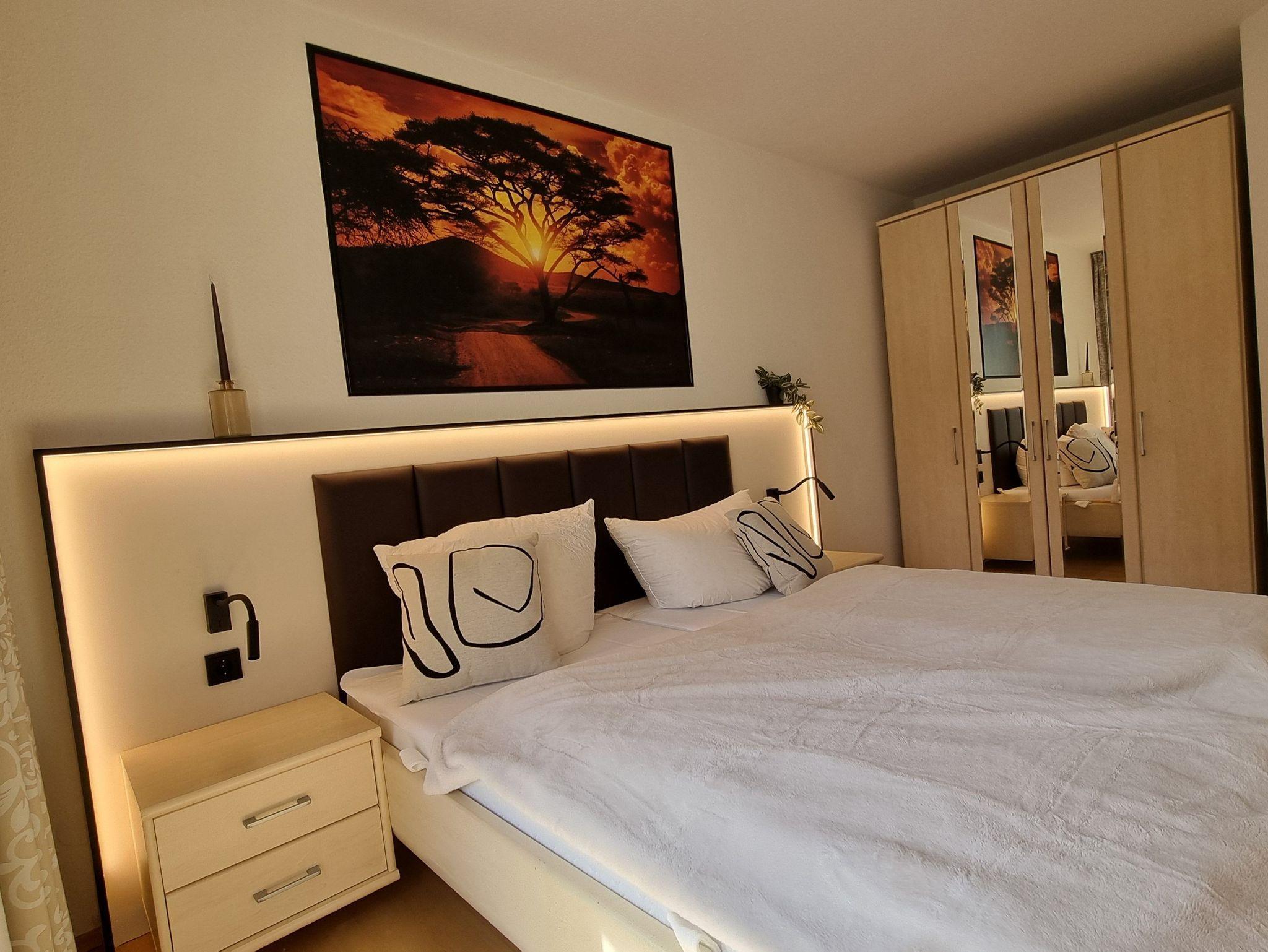 Die Wohnung verfügt über ein Schlafzimmer mit Doppelbett und ein Schlafzimmer mit 2 Einzelbetten. Die Wohnung ist ideal geeignet für Familien und Hundeliebhaber.