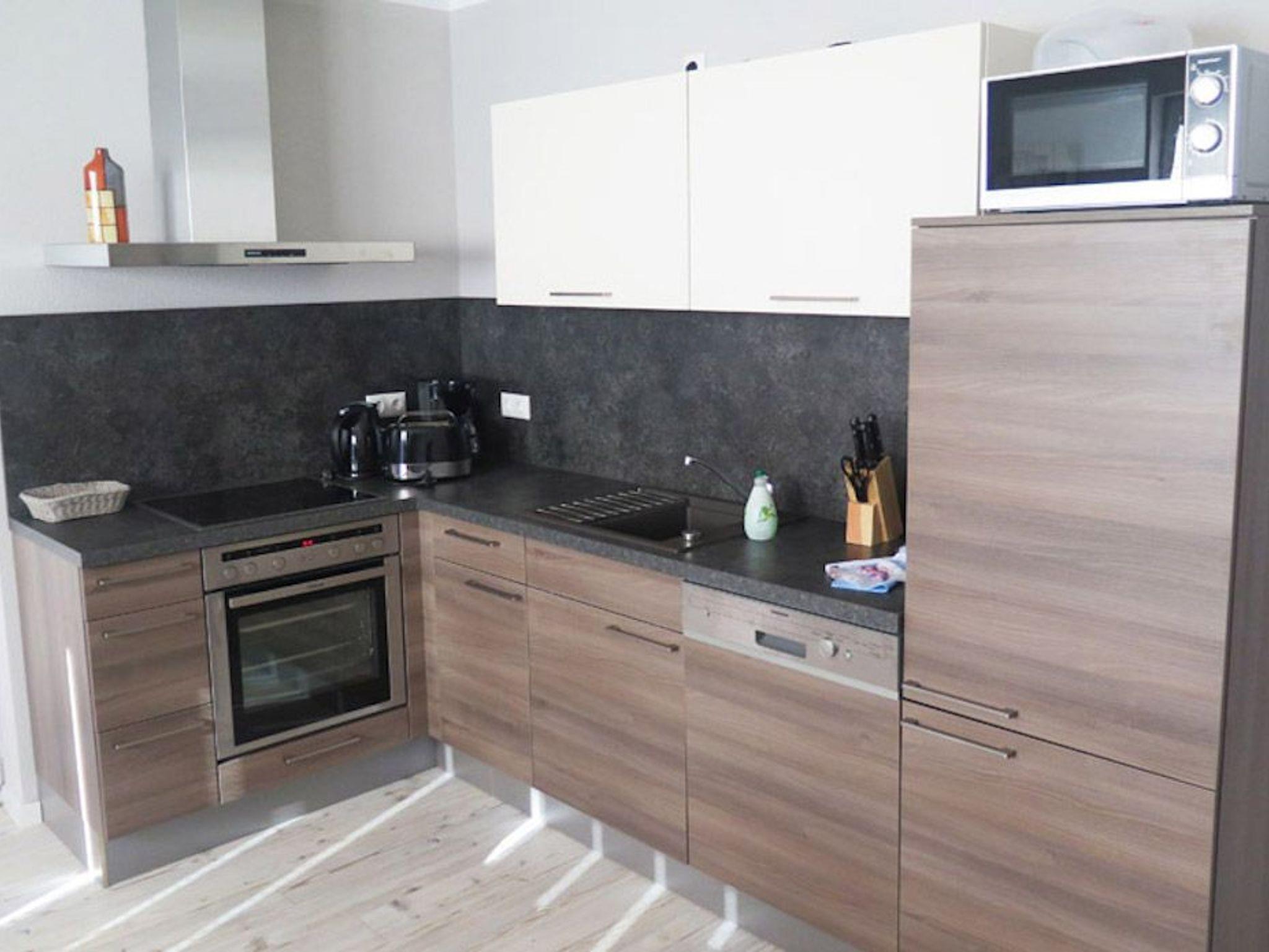 - Küchenbereich mit Küchenzeile (Backofen, Mikrowelle, 4 Zonen - Induktionskochfeld, Kühlschrank mit