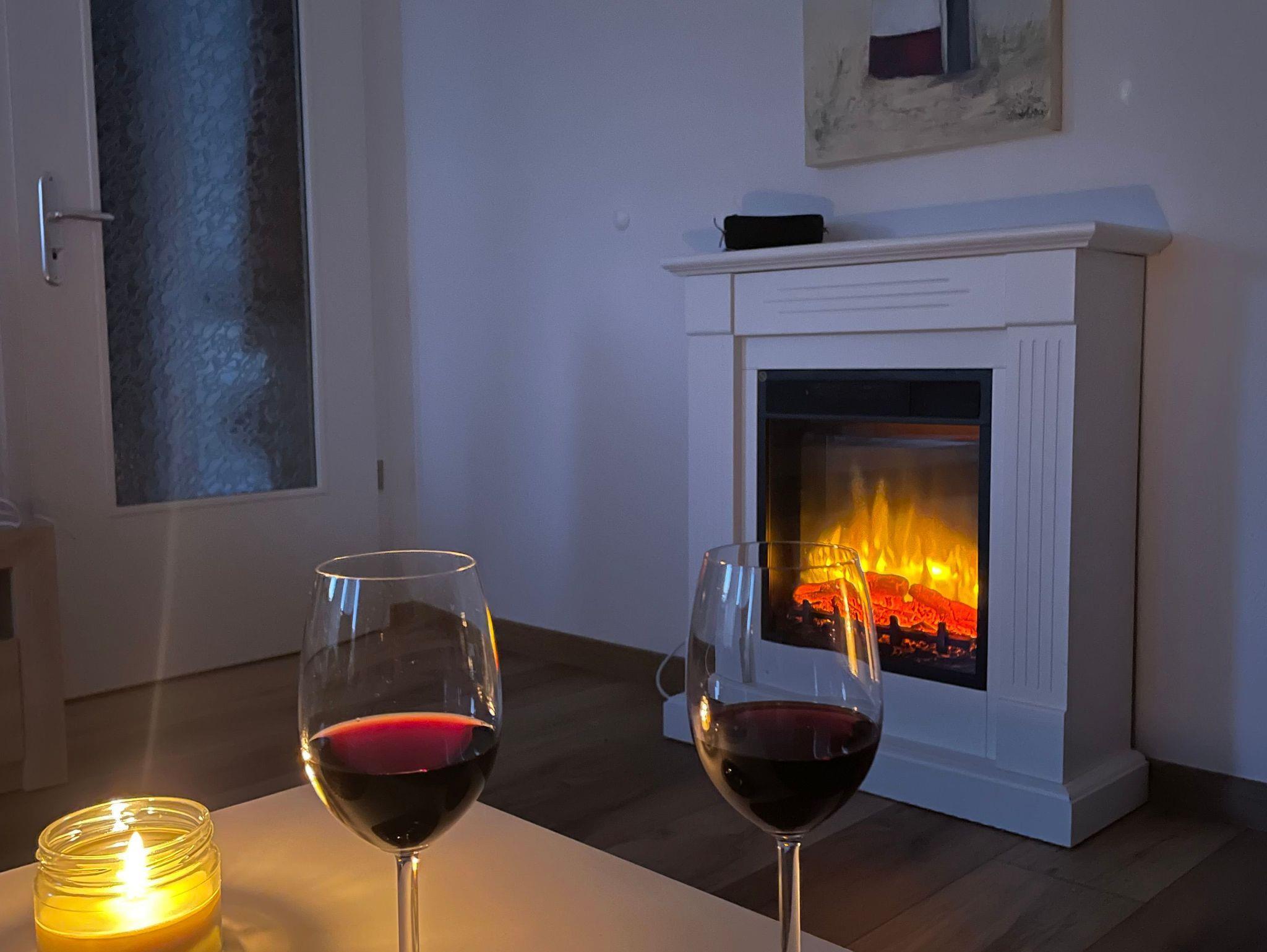 In der dunklen Jahreszeit können Sie es sich vor dem Elektrokamin (mit Wechselbeleuchtung) besonders gemütlich machen.