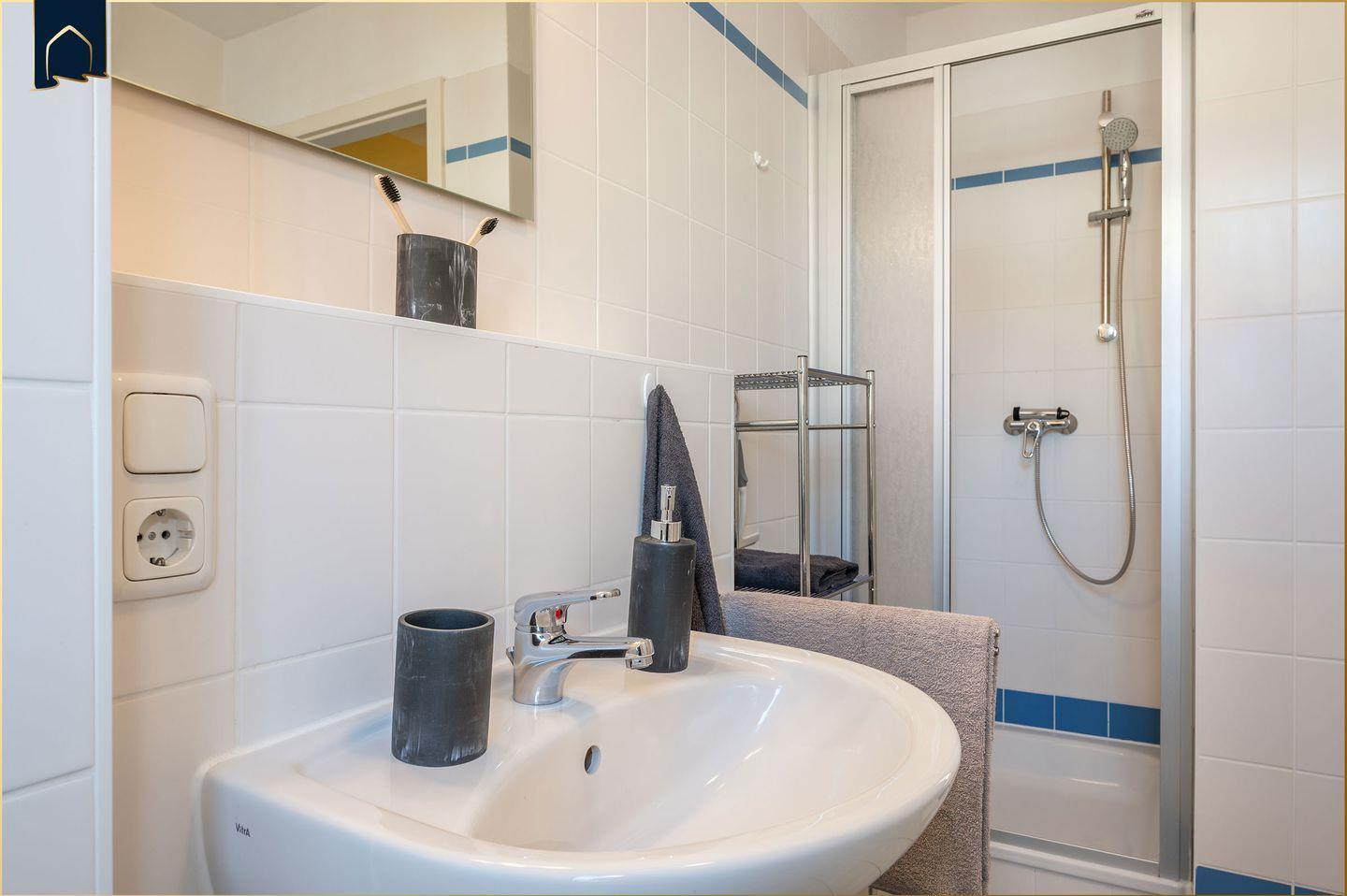 Die helle Wohnung verfügt über ein Schlafzimmer mit komfortablen Schlafmöglichkeiten für bis zu vier Personen sowie ein gemütliches Wohnzimmer mit Sofaecke und zwei Fernsehern. Im modern ausgestatteten Essbereich mit Esstisch genießen Sie gemeinsame Mahlzeiten. Die Küche ist komplett eingerichtet – von Backofen, Herd und Spülmaschine bis hin zu Kaffeemaschine, Toaster, Wasserkocher und Eierkocher. Praktische Extras wie Geschirr, Besteck, Küchenutensilien und Gefrierfach machen Ihren Aufenthalt unkompliziert. WLAN, Fliegengitter und Sichtschutz an allen Fenstern sorgen für zusätzlichen Komfort.
