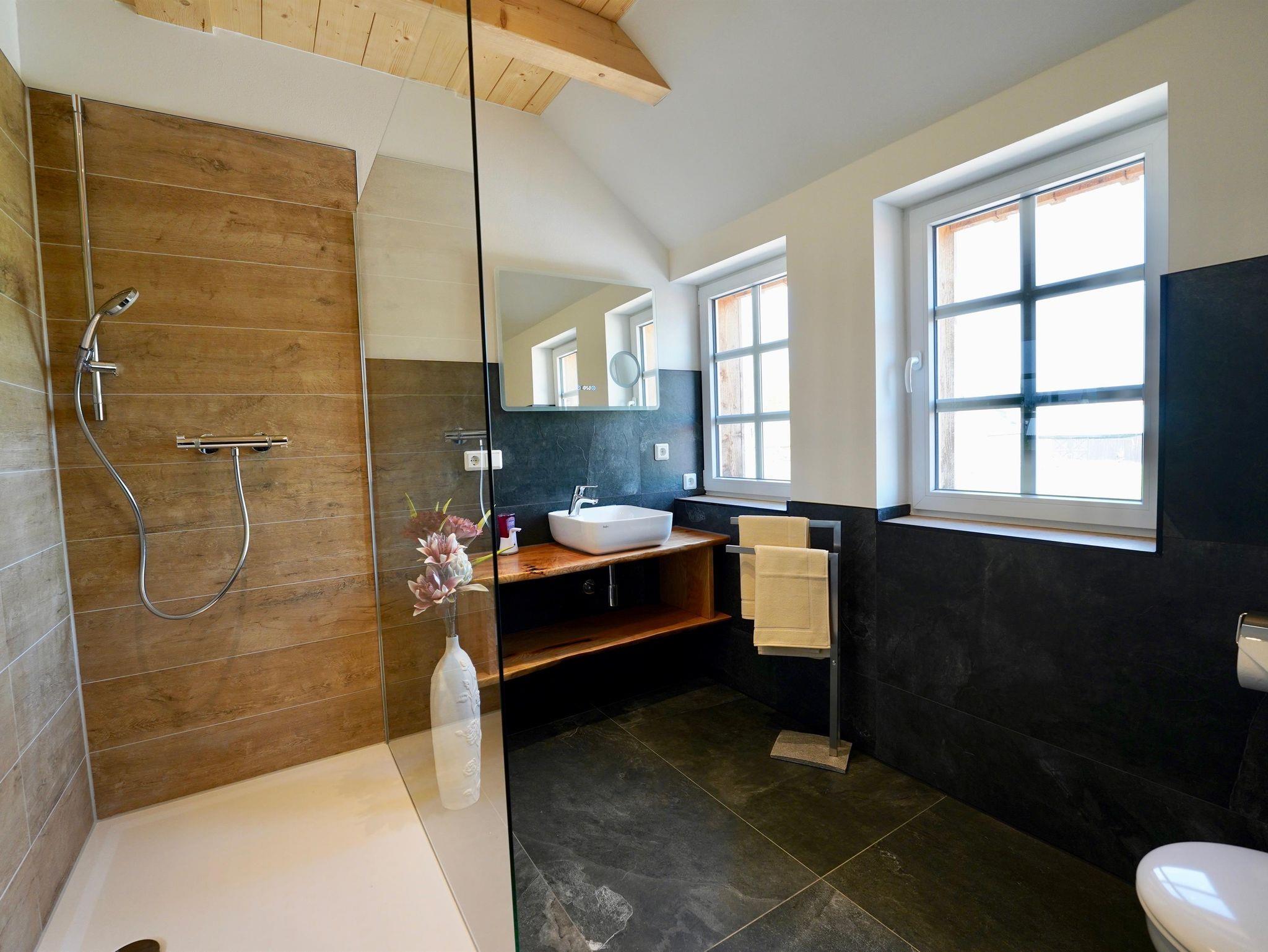 Unsere Familiensuite „Lerchenberg“ verfügt über einen geräumigen Wohn- und Essbereich mit viel Holzoptik, für ein wohliges Raumgefühl, sowie eine vollausgestattete Küche. Das große Badezimmer ist mit einer ebenerdigen Dusche, WC, Waschtischschrank und beleuchteten Spiegel ausgestattet, sowie einem separates WC. In den 3 Schlafräumen befinden sich 1 Doppelbett, 1 Einzelbett und 1 Etagenbett. Der offene Dachausbau erfolgte durch eine aufwendige Holzkonstruktion. Es besteht die Möglichkeit von 2 Aufbettungen und bei Bedarf die Nutzung einer zweiten Ferienwohnung mit 4 Betten. In der Ferienwohnung sind der Bettwäsche- und Handtuchservice sowie der Kaffee und eine kleine Tee-Auswahl in der Küche, als Service inbegriffen. Eine Flasche Mineralwasser als Begrüßungsgetränk und die Endreinigung nach dem Check Out gehören ebenfalls standardmäßig zu unserem Service.
