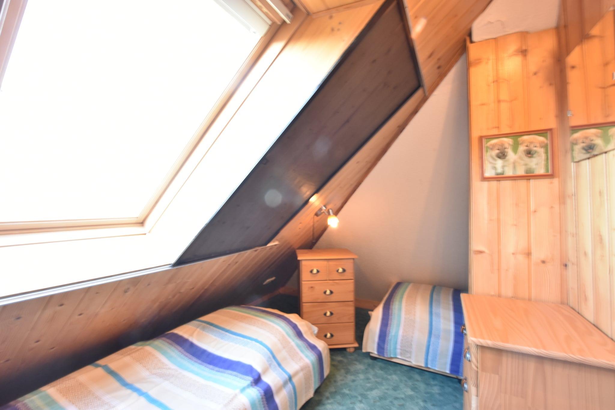On the 1st floor: (Entrance, open kitchen(electric kettle, toaster, cooker(4 ring stoves, electric), hood, coffee machine, oven, microwave, dishwasher, fridge(+ freezer)), Living/bed room(single sofa bed, TV, seating area, radio, CD player), bedroom(double king size bed, children's bed), Children's bedroom(2x single bed), bathroom(shower, washbasin, toilet, hairdryer), balcony, heating, stair gate) tumble dryer(shared with other guests, paid), washing machine(shared with other guests, paid), terrace(private, roofed), garden(fenced), bicycle storage, garden furniture, BBQ, parking, trampoline, deckchairs, sand pit, play equipment, slide, bicycles available(paid)