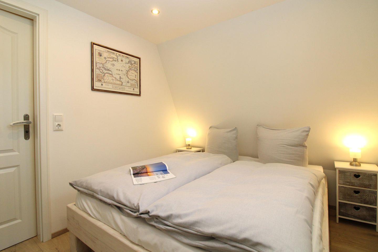 Das gemütliche 1. Schlafzimmer ist mit einem bequemen Doppelbett (160 cm x 200 cm), Nachttischen mit Nachttischlampen, einem geräumigen Sideboard sowie einem Sessel eingerichtet. Darüber hinaus stehen Ihnen hier ebenfalls ein Smart-TV-Gerät und ein Blu-Ray-Player zur Verfügung.