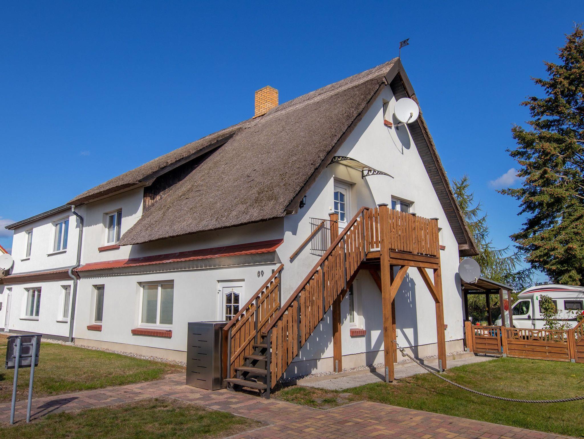 Die Ferienwohnung Sonnenseite liegt im idyllischen Fischerdorf Freest und eignet sich wunderbar für 4 Personen. Sie befindet sich ruhig gelegen in der oberen Etage eines ortstypischen Reetdachhauses und bietet auf etwa 60 m² alles, was du für einen entspannten Aufenthalt an der Küste brauchst. Über eine Außentreppe erreichst du die Diele der Wohnung. Das kleine Podest davor eignet sich prima, um an der frischen Luft zu sitzen oder die Sonne zu genießen. In der Wohnung erwarten dich ein gemütliches Wohnzimmer, zwei separate Schlafzimmer - eines mit Doppelbett, das andere mit zwei Einzelbetten - sowie eine voll ausgestattete Küche mit allem, was du für den täglichen Bedarf brauchst. In beiden Schlafzimmern steht dir ein eigener Fernseher zur Verfügung. Das Badezimmer ist mit Dusche, WC und einer Waschmaschine ausgestattet. Für kleine Kinder können auf Wunsch ein Kinderbett, ein Hochstuhl sowie Kinderbettwäsche mit Steppdecke bereitgestellt werden. Ein PKW-Stellplatz ist direkt an der Unterkunft vorhanden. Im Garten findest du eine Möglichkeit zum Grillen und kannst den Tag gemütlich im Freien ausklingen lassen.
