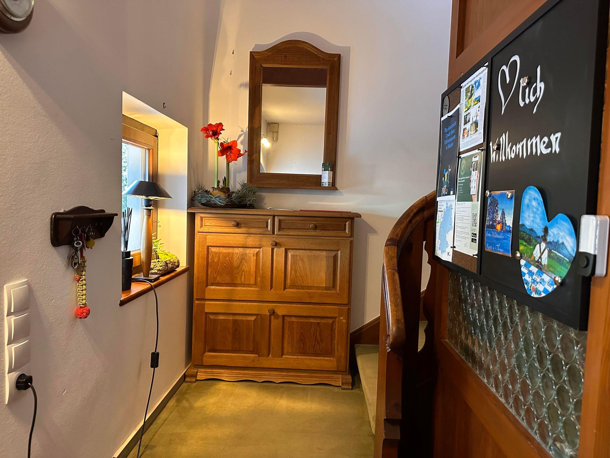 Der Flur verfügt über eine gemütliche Sitzecke. In der gesamten Ferienwohnung steht Ihnen das WLAN kostenfrei zur Verfügung.