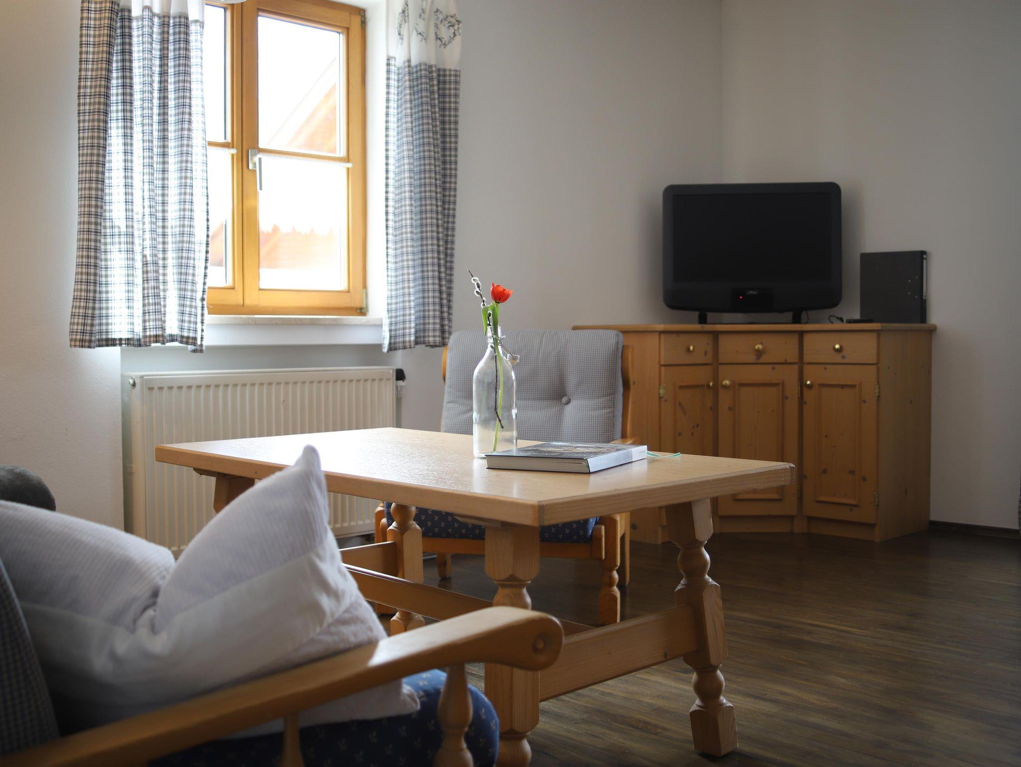 Das Schlafzimmer bestehst aus Fichtenholz für Ihren erholsamen Schlaf. Im Wohnraum befindet sich eine
