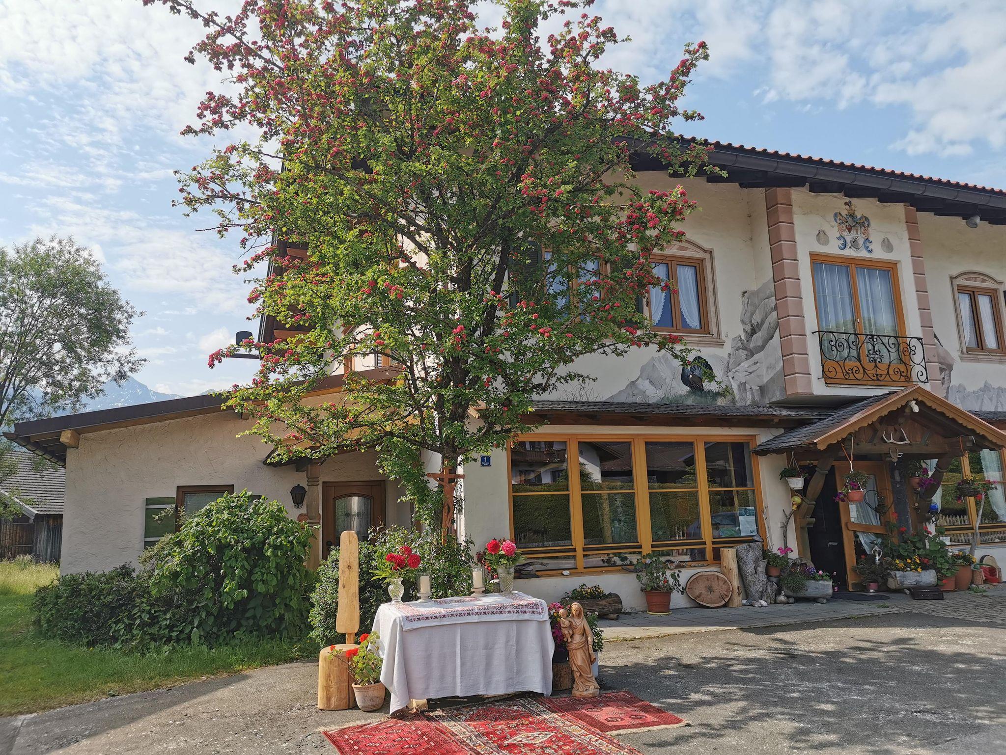 Unser Haus mit herrlicher Aussicht auf das Bergpanorama liegt im Zentrum von Krün, einem gemütlichen kleinen Ort im Isartal. Die gemütlich eingerichteten Ferienwohnungen mit Zirben-Details laden zu einem erholsamen Urlaub.