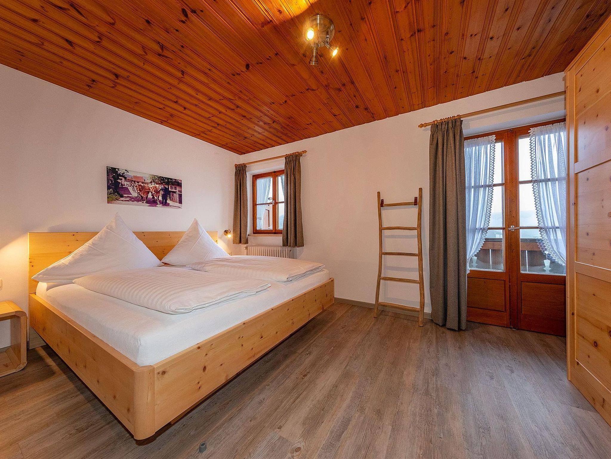 Die Ferienwohnung für 2 Personen, mit 37qm im ersten Stock, bietet eine ganz besondere Wohn-Atmosphäre. Das Zirbenholz-Schlafzimmer sorgt für Entspannung, da die Zirbe eine beruhigende und schlaffördernde Wirkung verspricht. Es befindet sich ein Zirbenholzbett (180x200) und ein Zirbenholzkleiderschrank darin, außerdem der Zugang zum Balkon. In der Wohnküche können Sie an sonnigen Tagen bereits auf dem Balkon frühstücken. Ein Kühlschrank mit Gefrierfach, Spülmaschine, Kaffeemaschine, Wasser- und Eierkocher, sowie Herd und Backofen helfen Ihnen dabei. Auch das Bad ist komfortabel mit Duschkabine und Handtuchtrockner ausgestattet. Der Süd- und Ostbalkon ermöglicht einen Rundumblick auf das Soiern-, Karwendel- und Wettersteinmassiv.