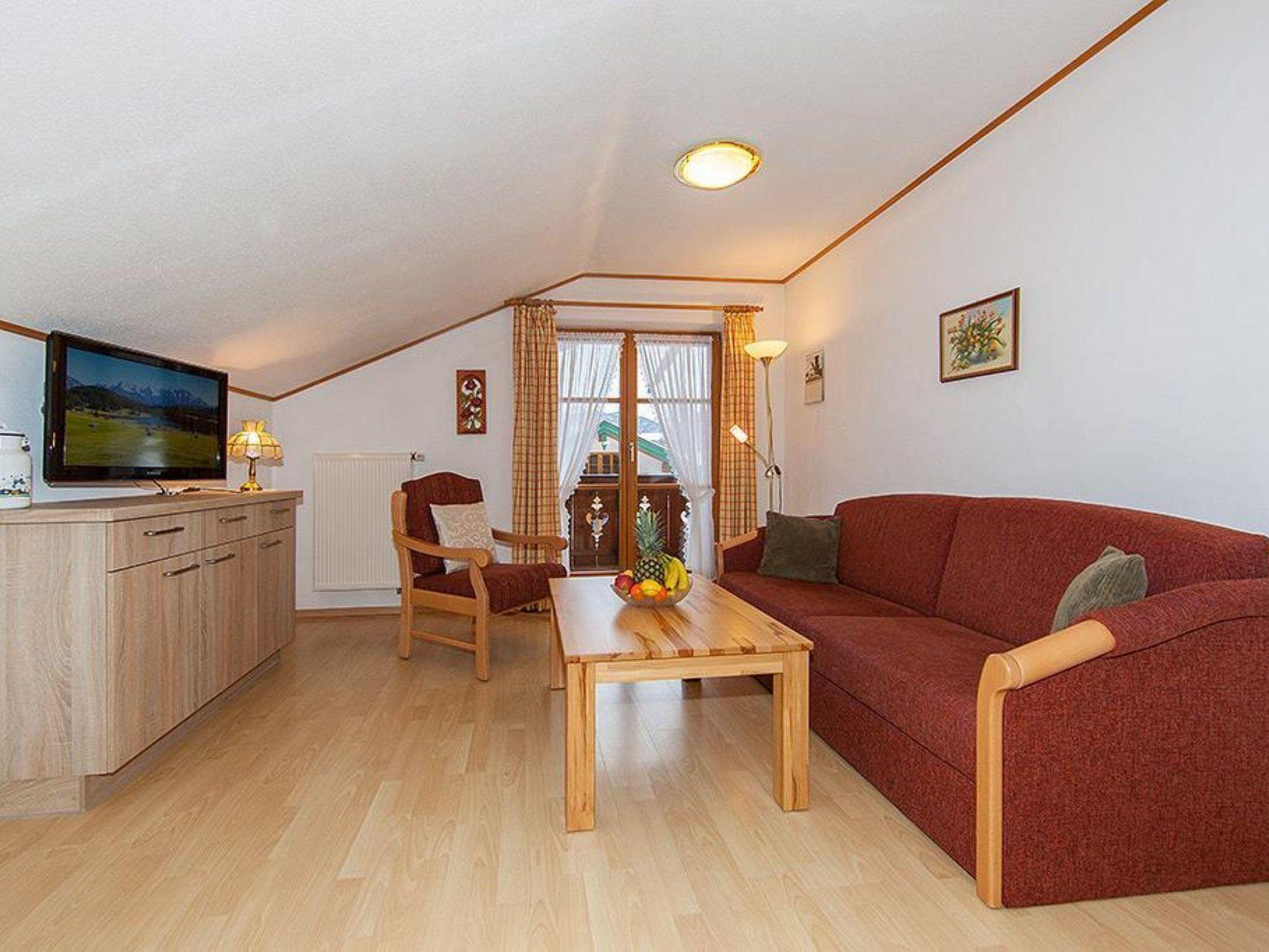 Unsere gemütliche Dachgeschosswohnung im 2. Stock überzeugt durch ihren hohen Kniestock und ein angenehmes Raumgefühl. Der große, möblierte Westbalkon bietet Ihnen traumhafte Ausblicke auf die umliegende Bergwelt – ideal zum Entspannen und Genießen.