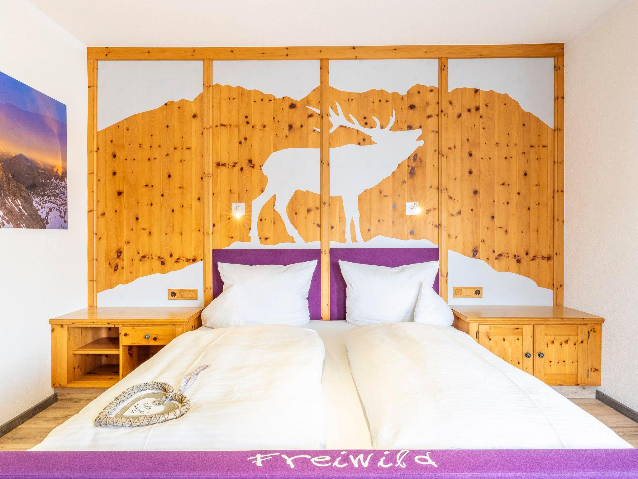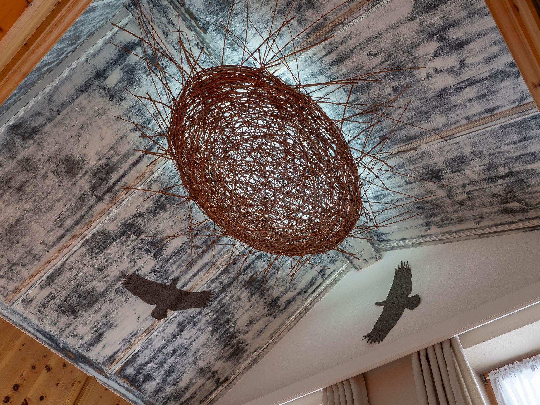 In unserer liebevoll gestalteten Ferienwohnung Adlerhorst fliegen Ihre Gedanken so frei wie die Adler über den Gipfeln. Namensgeber und Blickfang zugleich ist das kunstvoll gestaltete Adlernest unter der Mansarde – ein außergewöhnliches Detail, das unser Innenarchitekt eigens für diese Wohnung entworfen hat.