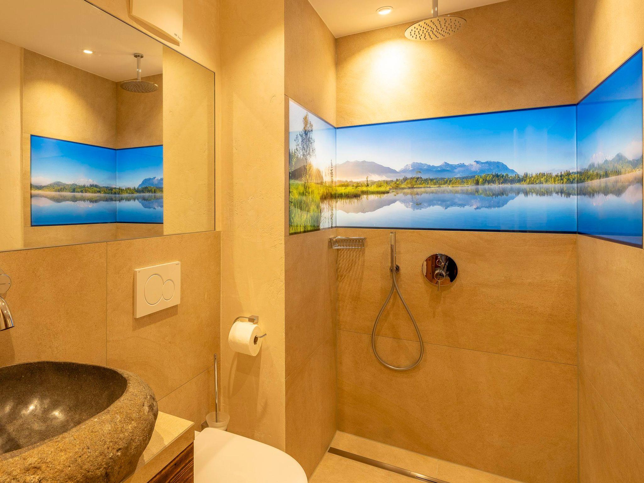 Vom Balkon aus genießen Sie einen wunderbaren Blick auf die Krüner Kirche sowie das majestätische Karwendel- und Wettersteingebirge – eine Aussicht, die berührt und inspiriert.