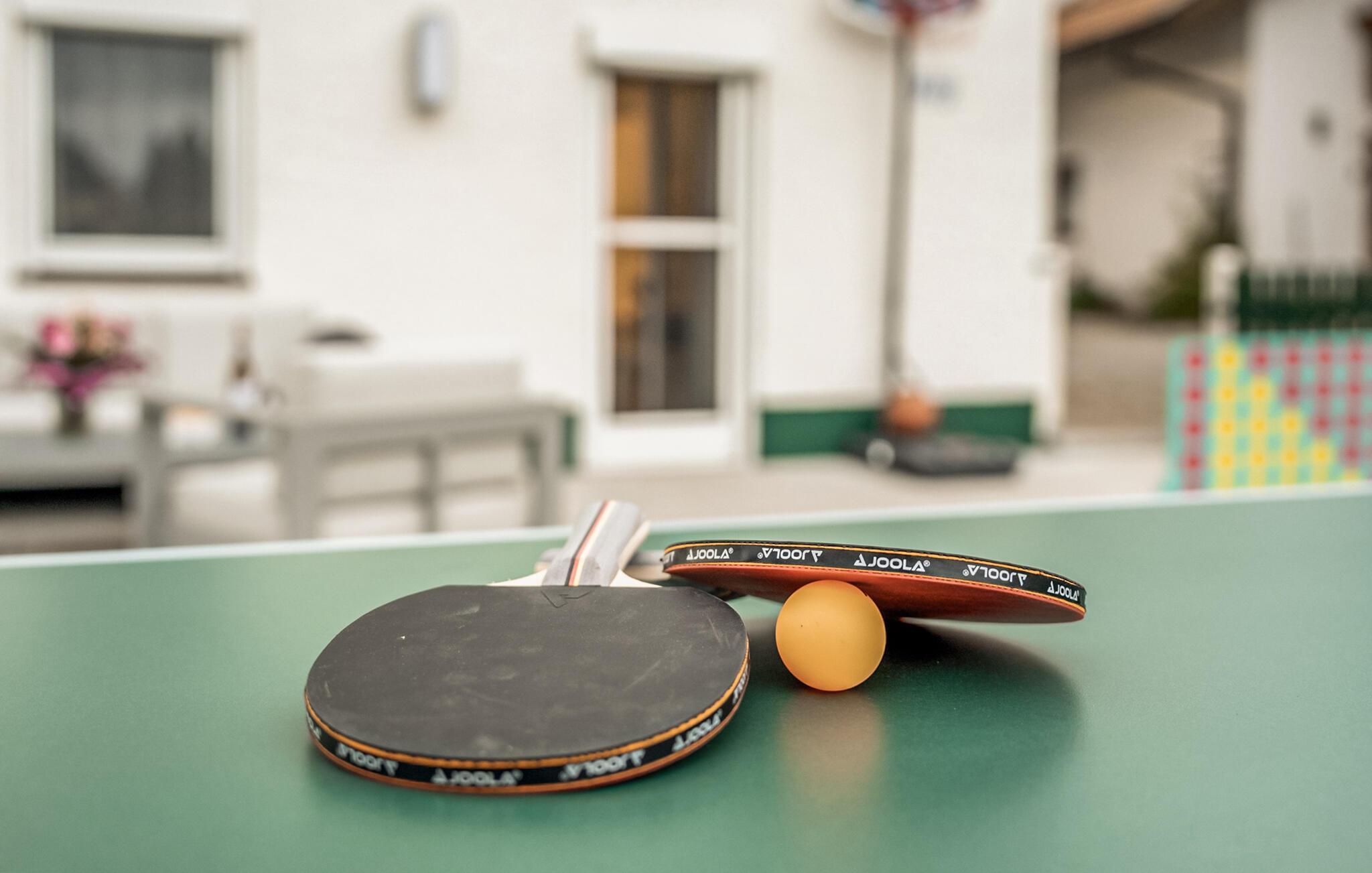 Schicken Sie Ihre Kinder auch in den Garten, in dem sie sich austoben können. Es stehen ein Trampolin, Schaukel, Spielgerät und für die Größeren eine Tischtennisplatte und ein Basketballkorb sowie viele Outdoor-Spiele bereit. Genießen Sie am Abend, in Ruhe ein Glas Wein auf den Gartenmöbeln mit Blick auf die Berge. In einem eigenen Abstellraum können Sie zwei E-Bikes gesichert aufladen.