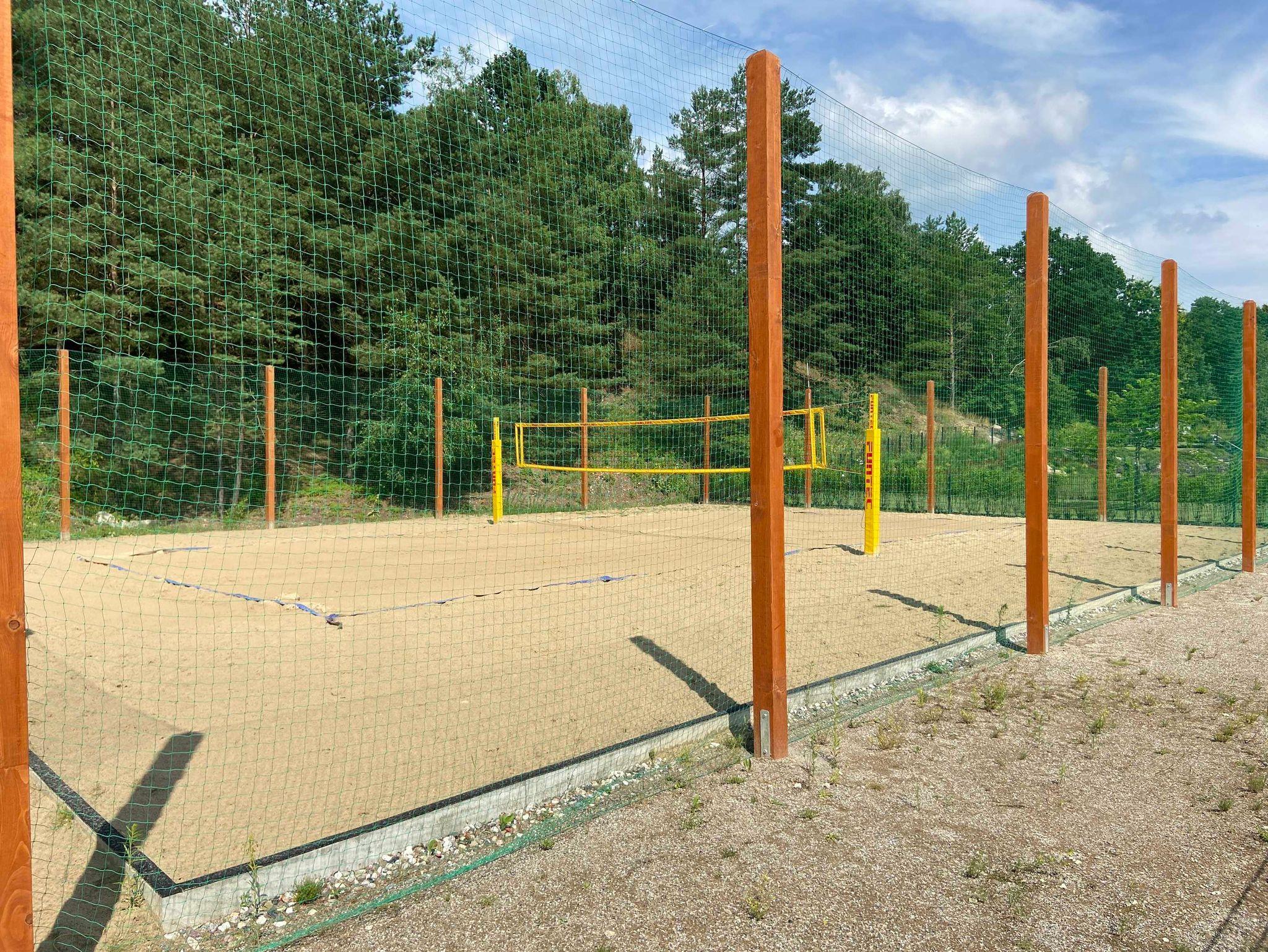 - Kinderspielplatz, Beachvolleyballplatz, Badestelle mit Steg
