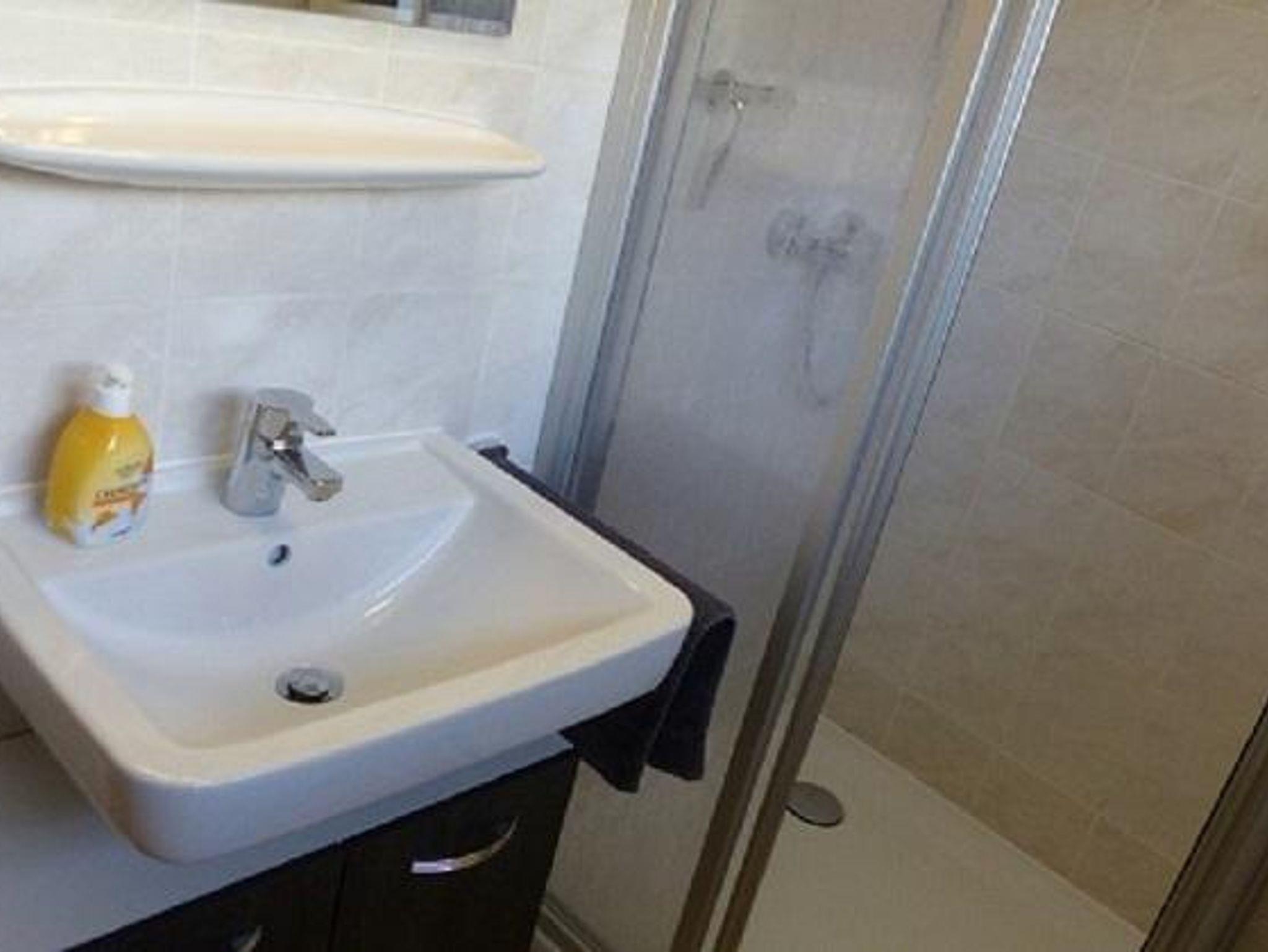 Sie finden in der Wohnung ein modernes Tageslicht-Badezimmer mit Dusche (flacher Einstieg), WC und Waschtisch.