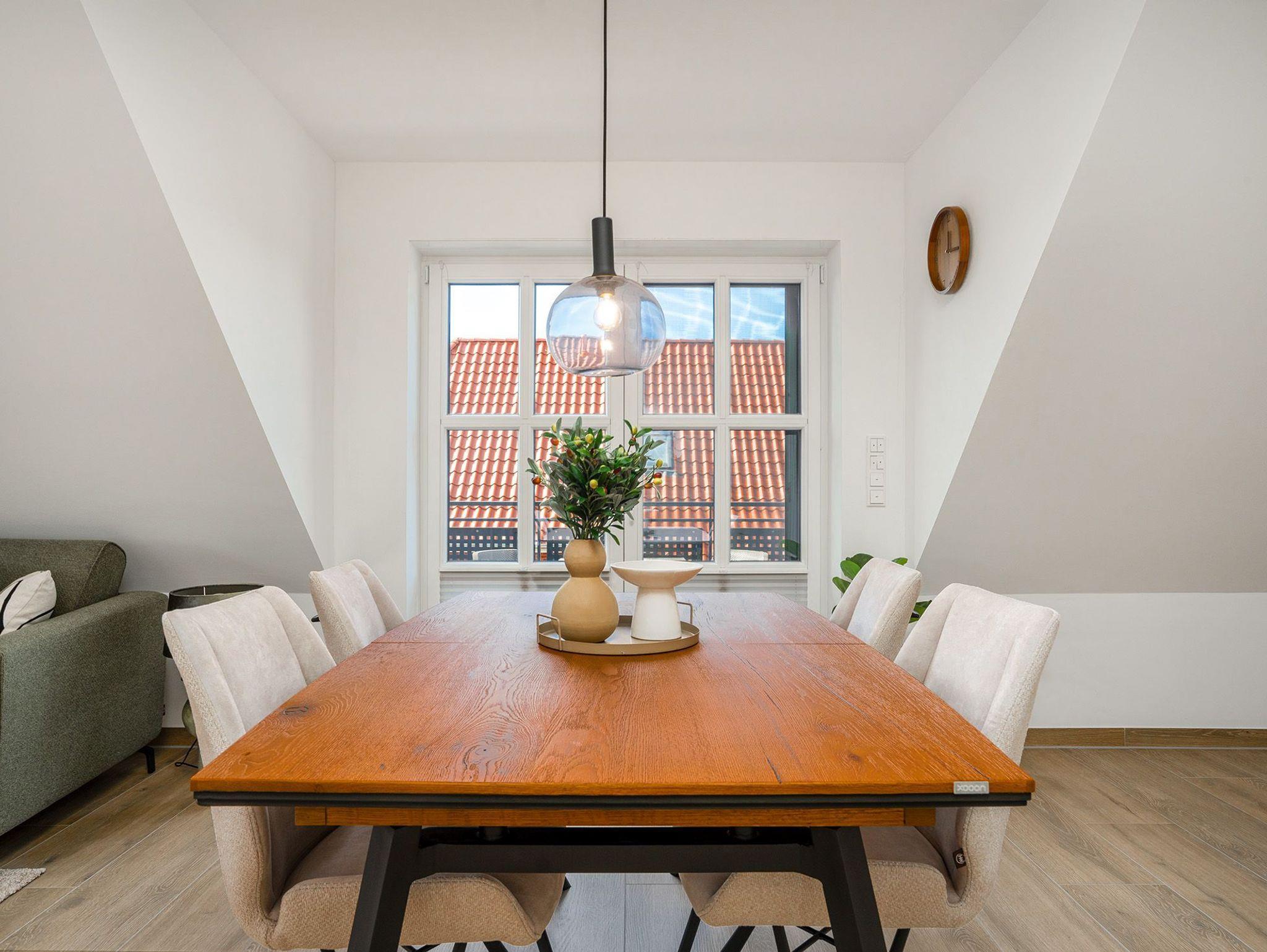 Die Ferienwohnung Muuske ist eine großzügige, stilvoll eingerichtete Unterkunft mit einer Größe von 70qm, die sich im Obergeschoss befindet. Der offene Wohn-Ess-Bereich der Wohnung ist besonders gemütlich und warm gestaltet, ideal zum Entspannen nach einem erlebnisreichen Tag. Der Raum besticht durch eine einladende Atmosphäre und bietet Zugang zu einem möbilierten Balkon, der zum Verweilen an der frischen Luft einlädt. Die hochwertige Küche ist modern und bestens ausgestattet, das Schlafzimmer mit Bad en Suite und Boxspringbett bietet zusätzlichen Komfort und Privatsphäre. Das dazugehörige Badezimmer verfügt über eine ebenerdige Dusche, die sowohl komfortabel als auch stilvoll ist. Ein weiteres Highlight ist das zweite kleine Tageslichtbad, das ebenfalls mit einer ebenerdigen Dusche ausgestattet ist und somit besonders praktisch für den Urlaub mit der Familie oder Freunden ist. Im ausgebauten Spitzboden finden Sie ein weiteres abgeschlossenes Schlafzimmer mit zwei gemütlichen Einzelbetten und einem Lesesessel ? perfekt für Kinder oder weitere Gäste. Selbstverständlich steht Ihnen auch ein eigener Parkplatz, sowie Abstellmöglichkeiten für Fahrräder zur Verfügung.