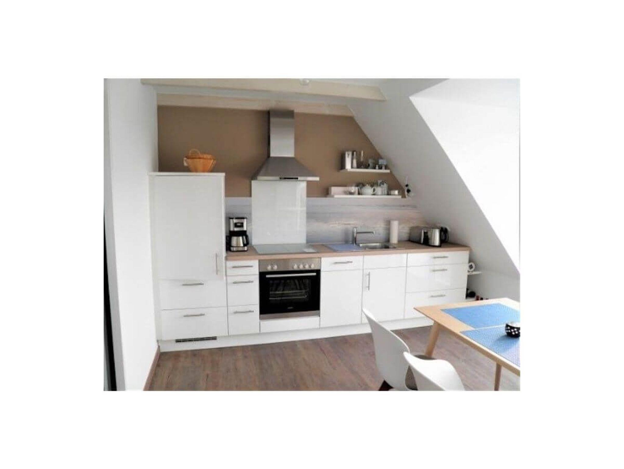 Die über eine Treppe zu erreichende Obergeschoss Wohnung liegt in einem ruhigen Winkel des Fischerdorfes. Dennoch erreicht man innerhalb weniger Gehminuten den Hafen bzw. weitere Einkaufsmöglichkeiten im Dorfzentrum.