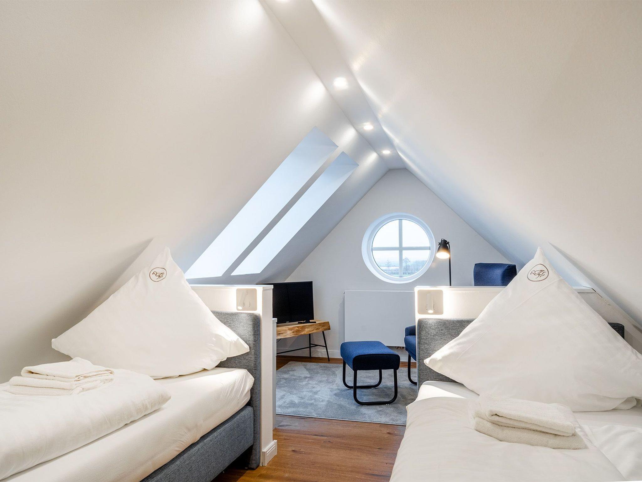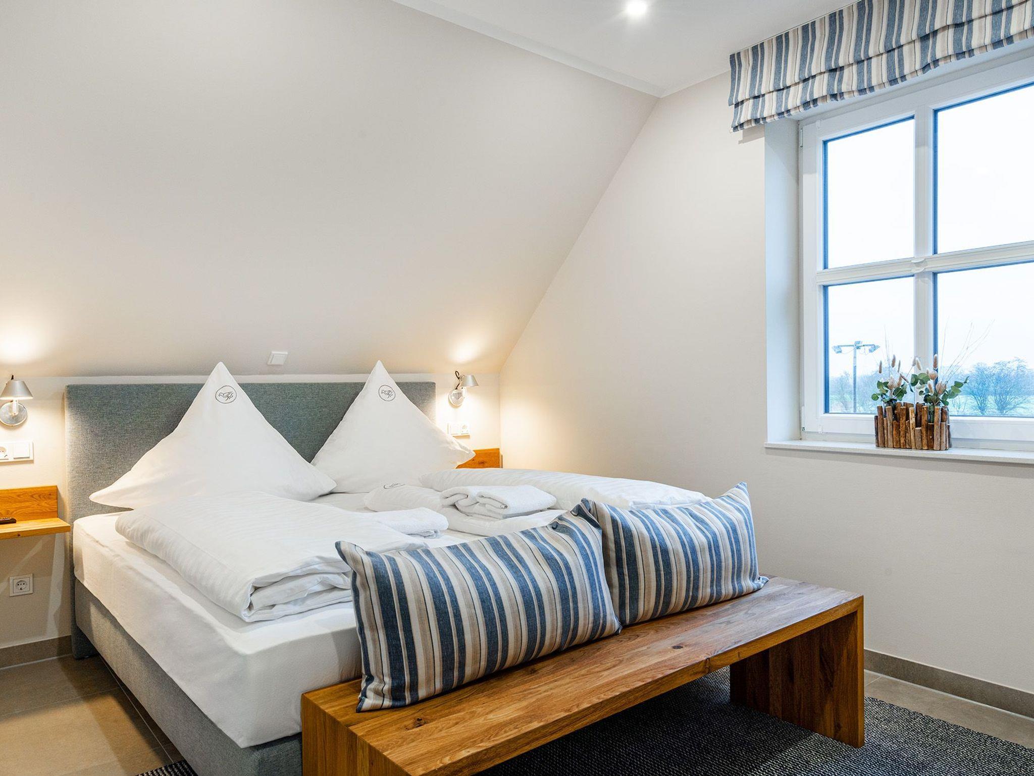 Verbringen Sie die wertvollsten Tage des Jahres in unserer neu erbauten Ferienwohnung Küstenglück. In der ruhigen Boomstroat, direkt am Feld gelegen, bietet diese Wohnung auf etwa 70qm einen hellen und modernen Wohn-Ess-Bereich mit einer voll ausgestatteten Küchenzeile und Zugang zum Sonnenbalkon, sowie ein Tageslichtbad mit bodengleicher Dusche. Ein zusätzliches WC bringt besonderen Komfort mit sich. Sowohl im gemütlichen Schlafzimmer mit Doppelbett als auch im ausgebauten Spitzboden finden Sie hochwertige und bequeme Boxspringbetten. Der Spitzboden bietet sich mit dem bequemen Lesesessel und einem zusätzlichem TV außerdem als perfekten Rückzugsort an - und das mit einem grandiosen Blick auf die bekannten Greetsieler Zwillingsmühlen! Das Highlight dieser Wohnung ist zweifelsohne die eingebaute Infrarotsauna, die nach langen Spaziergängen oder Radtouren Erholung verspricht. Auch auf dem möbilierte Balkon kann man die Seele gut baumeln lassen und die vorhandene Markise bietet den nötigen Sonnenschutz. Ein weiterer Pluspunkt sind die beiden vorhandenen PKW-Stellplätze, sowie der Abstellraum für Fahrräder, in dem Sie Ihre Pedelecs und E-Bikes kostenlos laden können. Durch die auf dem Dach des Abstellraum installierten Photovoltaik Paneele ist diese Wohnung außerdem besonders nachhaltig, denn ein Teil des verbrauchten Stroms wird vor Ort selbst produziert. Die Wohnung wurde vom Deutschen Tourismus Verband weiterhin aufgrund der Hochwertigkeit mit fünf Sternen zertifiziert.