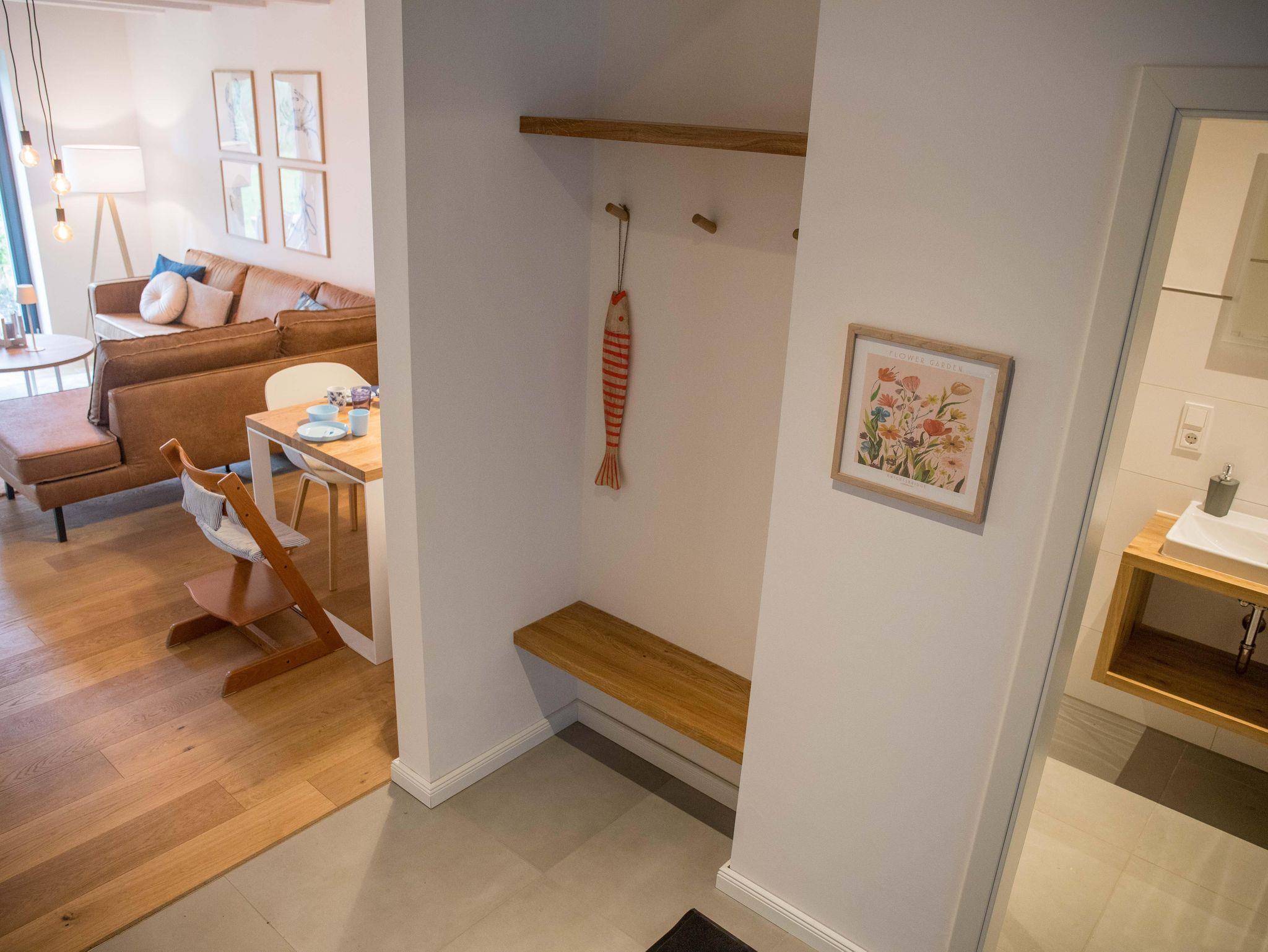 Genieße einen entspannten Aufenthalt auf 74 m², verteilt auf zwei Etagen, mit heller, moderner Einrichtung, liebevollen Details und einer perfekten Südlage mit freiem Blick ins Grüne.