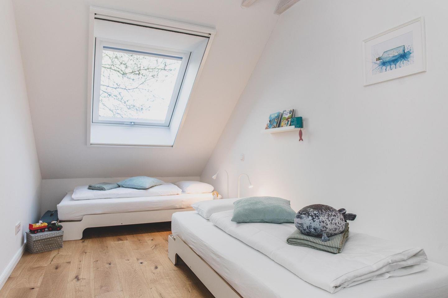 In der 2-geschossigen Ferienwohnung BENTE erwarten euch im EG ein Wohn-Essbereich mit offener Küche, einem Gäste-WC, Diele mit Garderobe und einem Abstellraum. Im OG befinden sich zwei Schlafzimmer und ein Bad mit Dusche, Badewanne und WC.