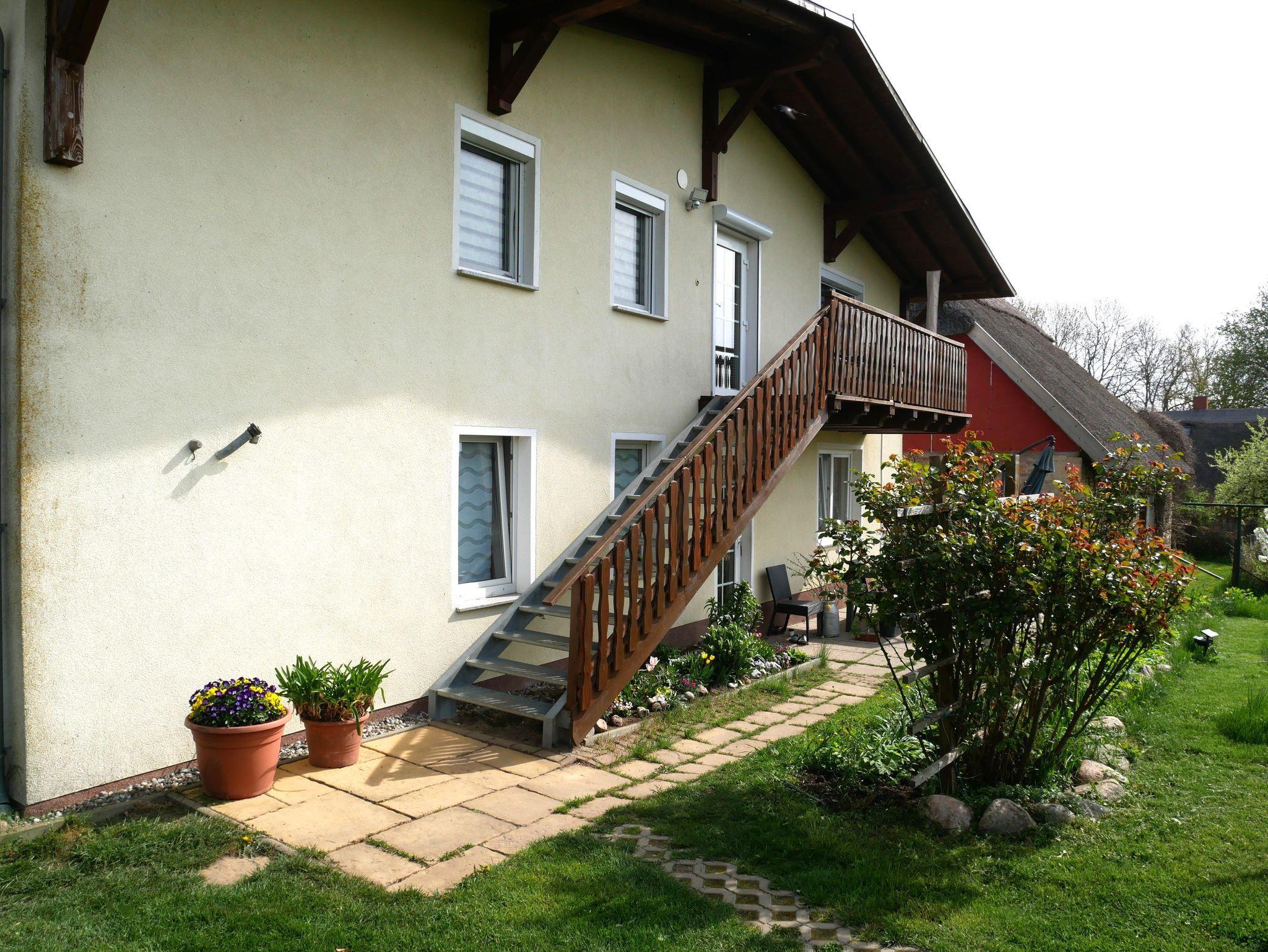 Die Ferienwohnung befindet sich im idyllischen Fischerdorf Neeberg auf der Insel Usedom. Sie liegt im 1. Obergeschoß und ist über eine Außentreppe mit Balkon und Sitzmöglichkeit zu erreichen. Es stehen Ihnen 1 Wohnzimmer, 1 Küche, 2 Schlafzimmer (1x Doppelbett; 2x Einzelbett) und 1 Badezimmer mit Badewanne und Dusche zur Verfügung.