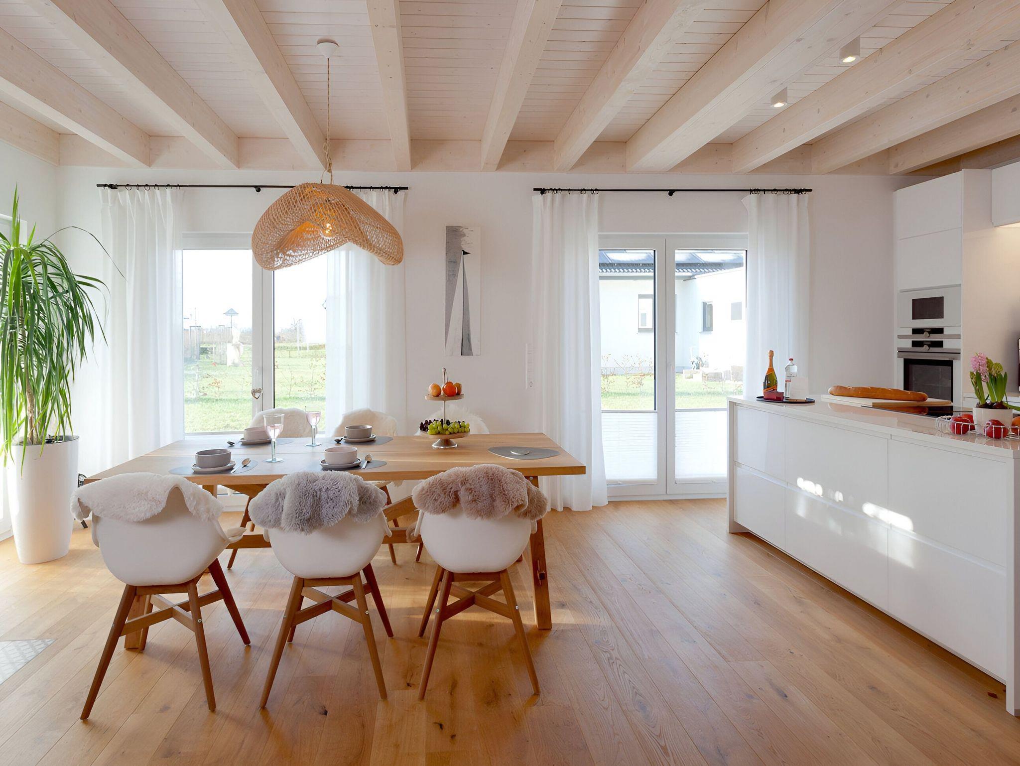 Ferienhaus No. 2: ca. 140 m², 2 Schlafzimmer, offener Wohn/Essbereich mit Kamin, Küche, Bad mit Sauna, Terrasse & Garten.