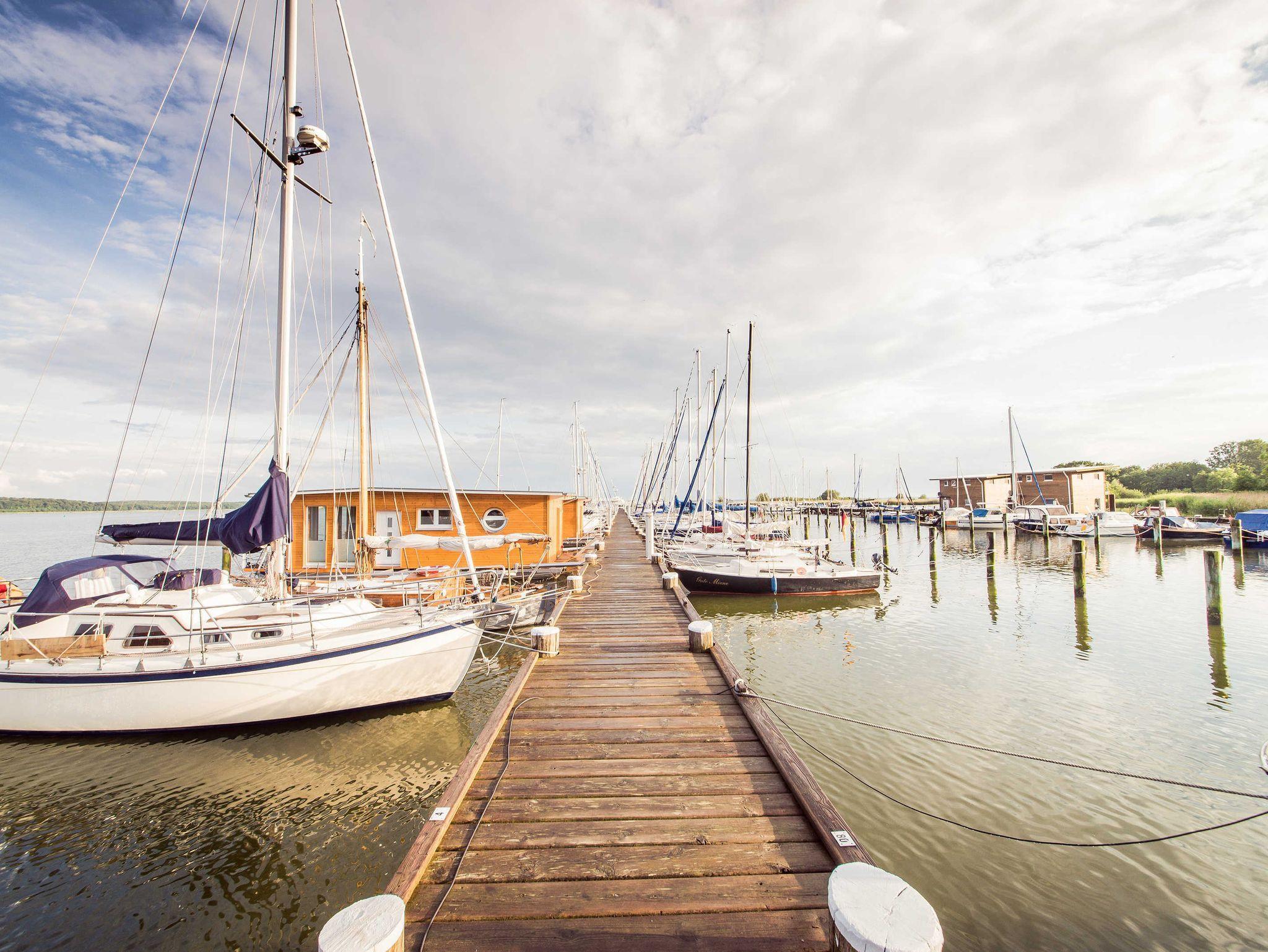 Beim Frühstück auf der Terrasse beginnt der Tag mit einem Panorama-Blick in die Krumminer Wiek. Romantische Sonnenuntergänge lassen den Tag im Naturhafen ausklingen. Und im Krumminer Hafen gehen die Uhren anders. Keine Hektik, keine Termine: Lassen Sie im Hafen den Alltag vom Festland hinter sich.