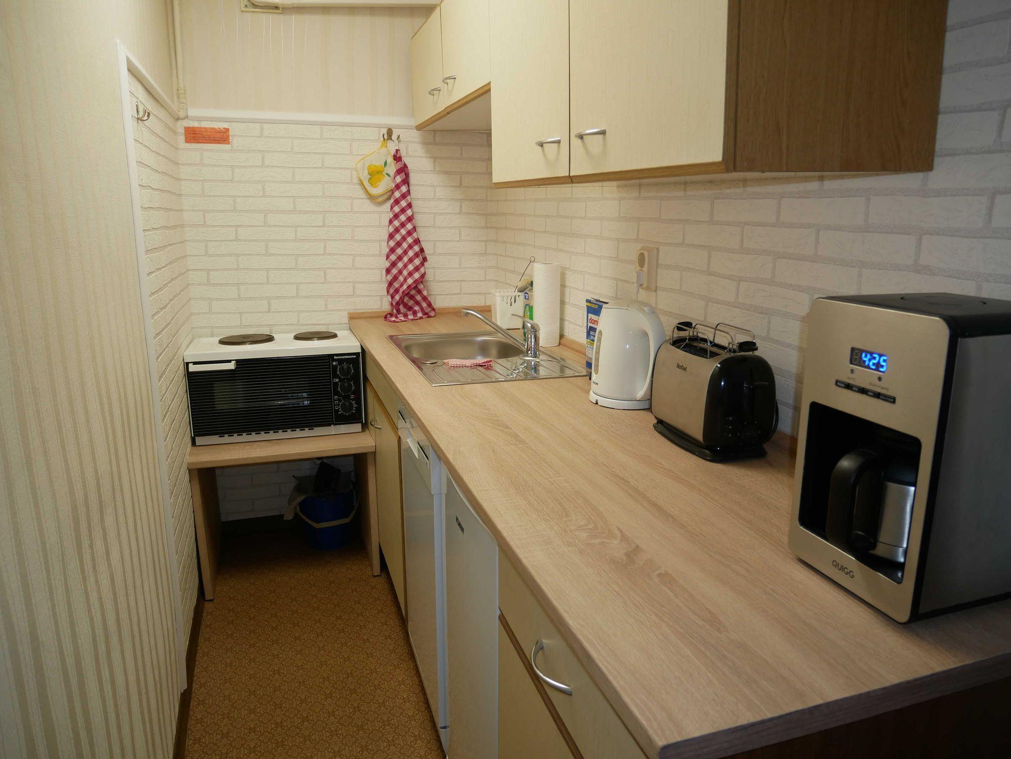 Pantry-Küche: Mini-Backofen mit 2 Herdplatten, Kühlschrank, Kaffeemaschine, Toaster