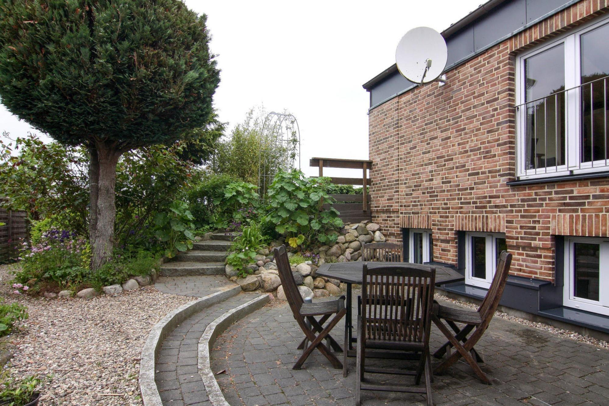 Chic feel-good holiday home in the idyllic and popular seaside resort of Krusendorf, just 150 meters from the Baltic Sea, in a quiet location on a private road. Spend your vacation on the beautiful natural beach, or on the terrace equipped with inviting garden furniture, which scores with a great view of the Baltic Sea. Here you can have a barbecue with the family and enjoy the sun and tranquility. For the children there is a slide, a swing and a trampoline on the 350 m² large and lovingly landscaped garden. The living area on the upper floor impresses with its bright, light-flooded atmosphere, while the open kitchen is modern and equipped with everything you need to prepare a delicious meal. On cooler days, relax with a glass of wine in front of the warm and cozy fireplace. There is a garden shed on the property, on which a solar cell is installed to power the house. The municipality of Krusendorf stretches along the Baltic Sea coast in the Danish town of Wohld between Kiel and Eckernförde. The seaside resort is 18 km south-east of Eckernförde. Beach chairs can be rented in Surendorf, 2 km away. For a detour to the Schleswig-Holstein state capital, you need about 20 minutes by car. Highlights included: All consumption-based electricity costs, 2 car parking spaces directly at the house, play equipment for children (impact bike, tricycle, balls), Activities nearby: Miles of cycle paths and well-developed roads lead along the coast and offer a fantastic view of the Baltic Sea - great for cyclists, skaters and motorcyclists. Of course, the long beaches on your doorstep also offer unlimited bathing fun. The little guests will find play equipment and, thanks to the gently sloping water, can play and romp to their heart's content. A trip to Eckernförde should definitely be on your vacation plan. Here you can also rent private boats and experience Eckernförde Bay from the water. There is a surfing school with a beach sauna just 1 km towards Eckernförde. There you will find an ideal area for kiters and surfers. Stand up paddles can also be hired there, as in Krusendorf. Mobility: Not suitable for people with limited mobility.