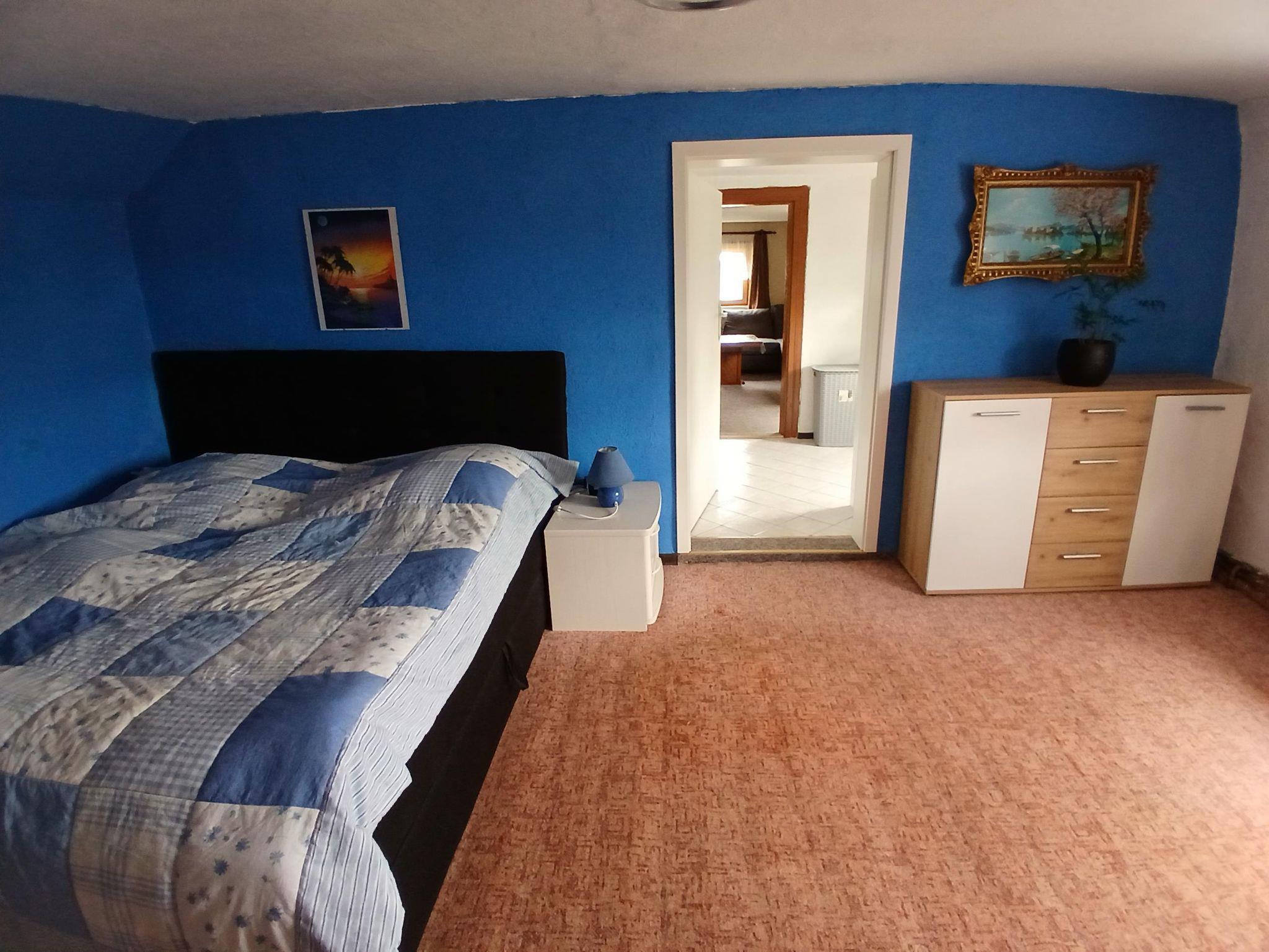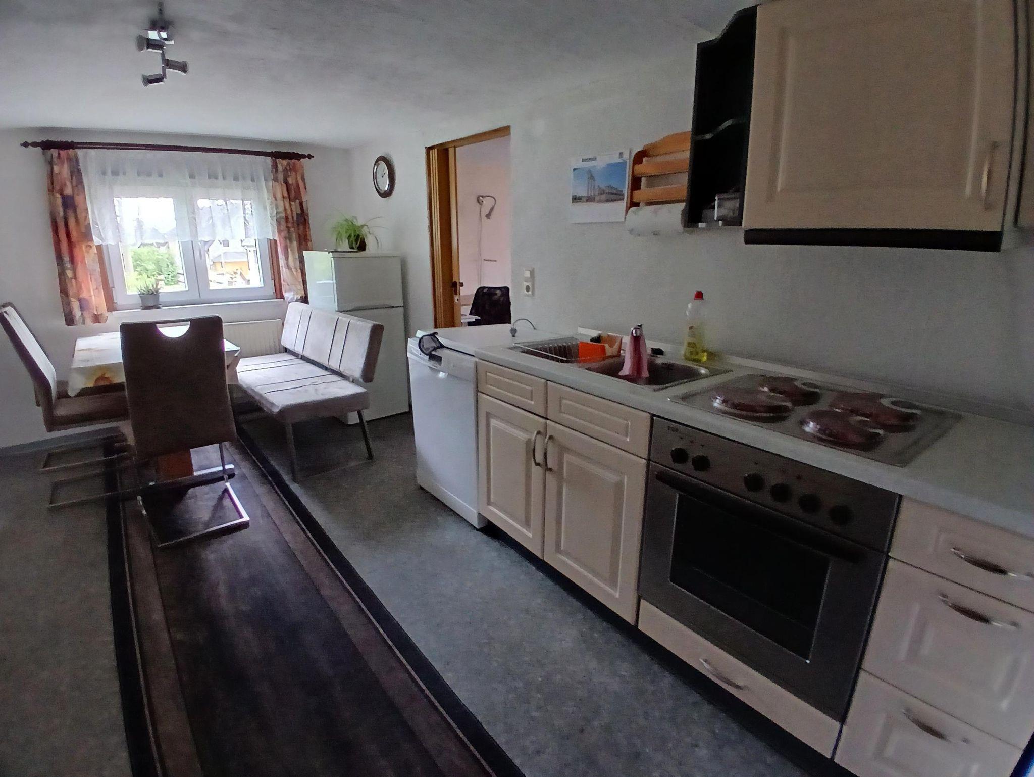 Ihre Ferienwohnung (70 qm) mit eigenen Eingang hat eine voll ausgestattete Küche. Sie haben im Wohnzimmer eine Eckcouch mit Liegefunktion, TV, WLAN, sowie einen kleinen Kaminofen für gemütliche Stunden. Desweitern haben Sie ein Badezimmer mit Dusche sowie ein Schlafzimmer mit Doppelbett. Eine zusätzliche Aufbettung mit Doppelbett ist im Dachgeschoß des Hauses möglich bzw. eine Gästeliege oder ein Kinderbett stehen auf Anfrage zur Verfügung. Da wir uns in einem historischen Gebäude befinden, ist die Deckenhöhe der Zimmer 2 m. Der Parkplatz ist am Haus. Selbstverständlich dürfen Sie unseren Garten mit Grillecke für einen entspannten Abend gern mit nutzen. Eine Spielecke im Garten für die kleinen mit Sandkasten und Schaukel darf natürlich nicht fehlen. Der Brötchenservice beim Bäcker ist auf Anfrage möglich.
